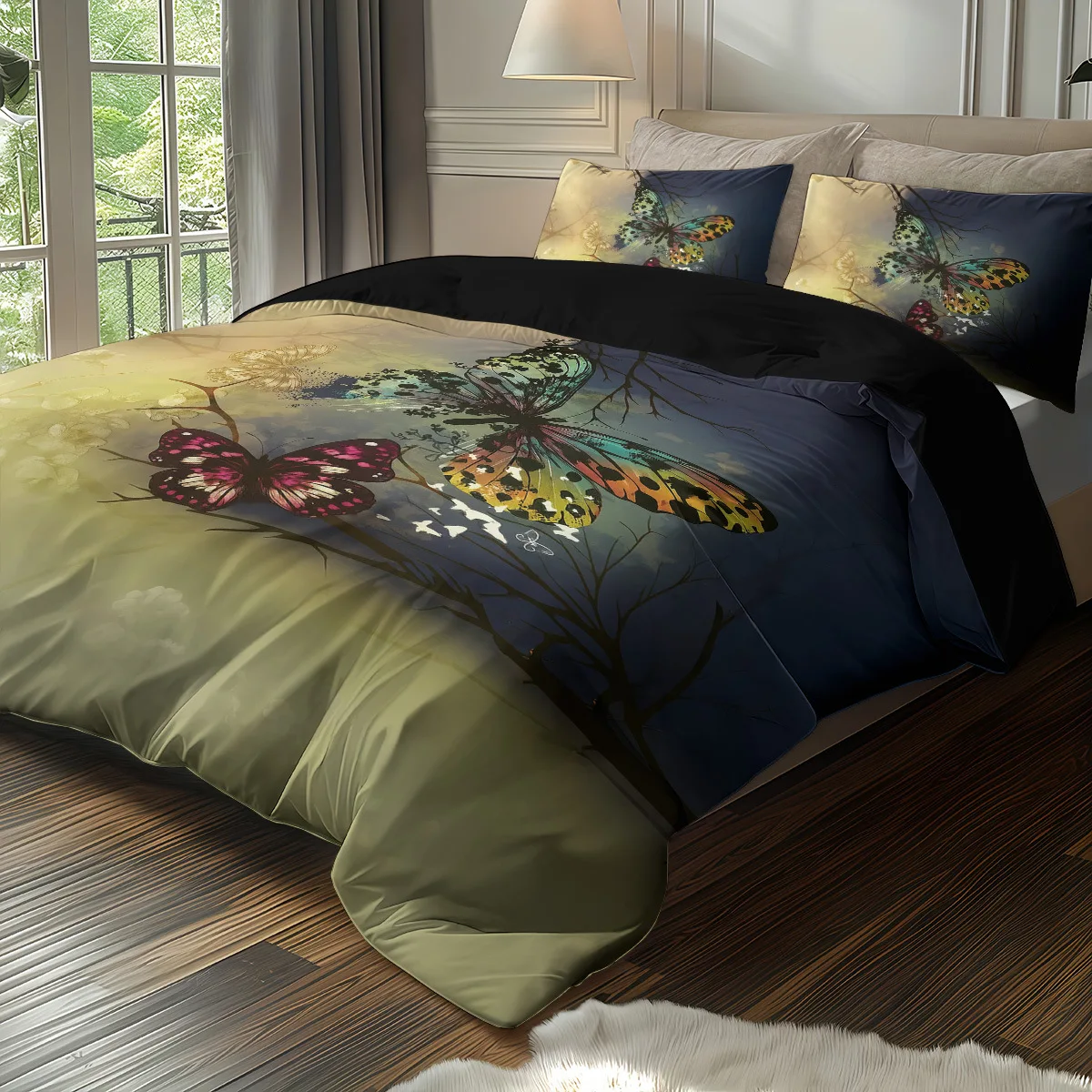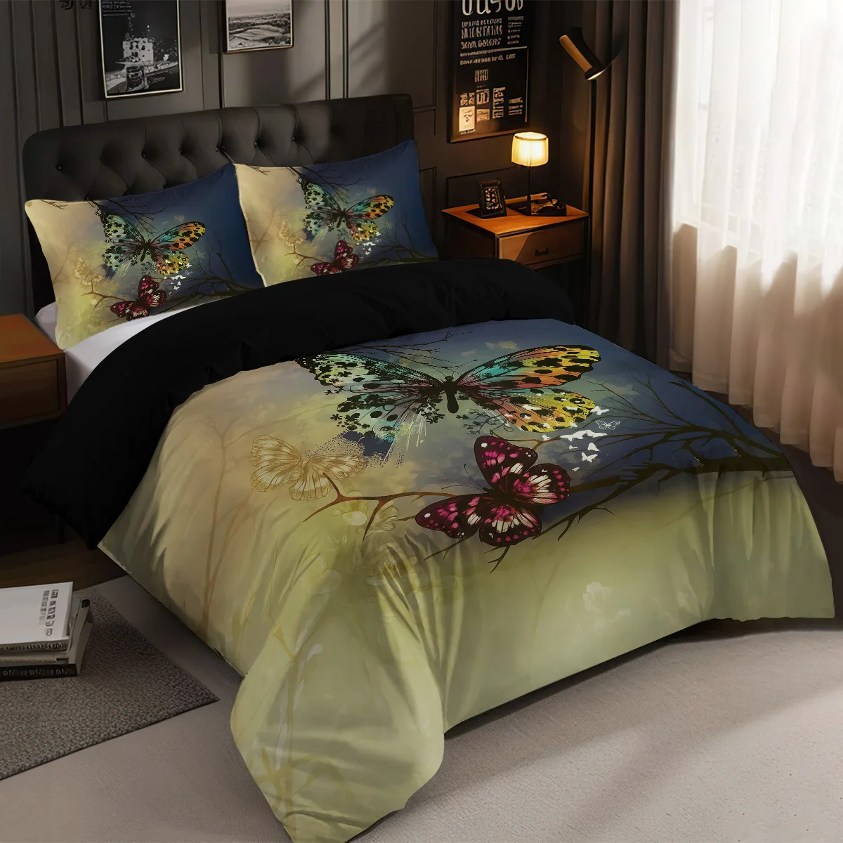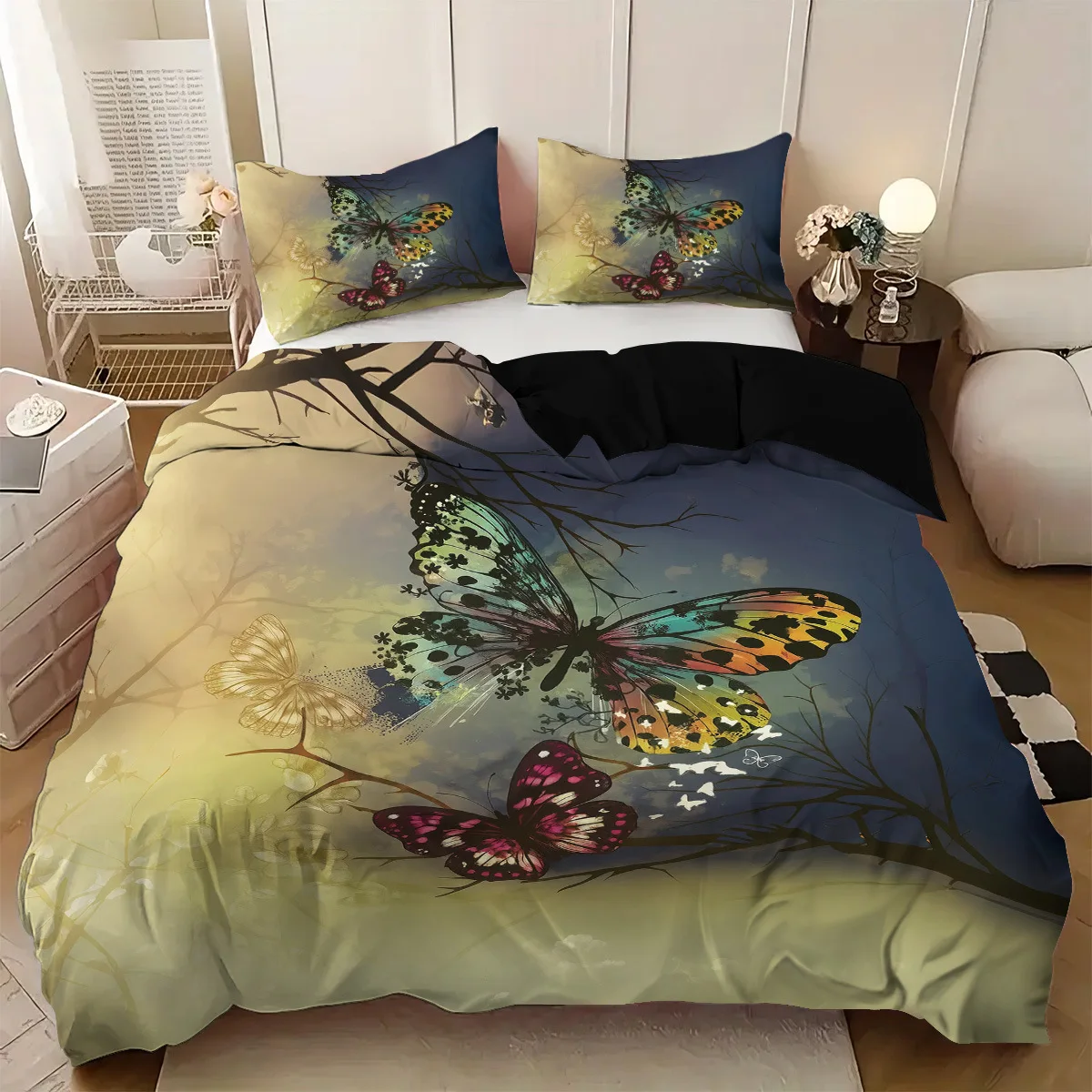 Conjunto de capa de edredom de flor de borboleta com impressão digital elegante - cama macia e confortável com design clássico - ideal para