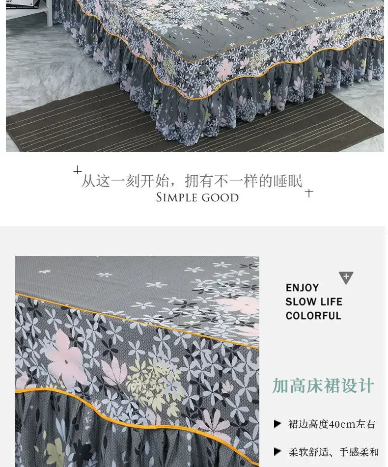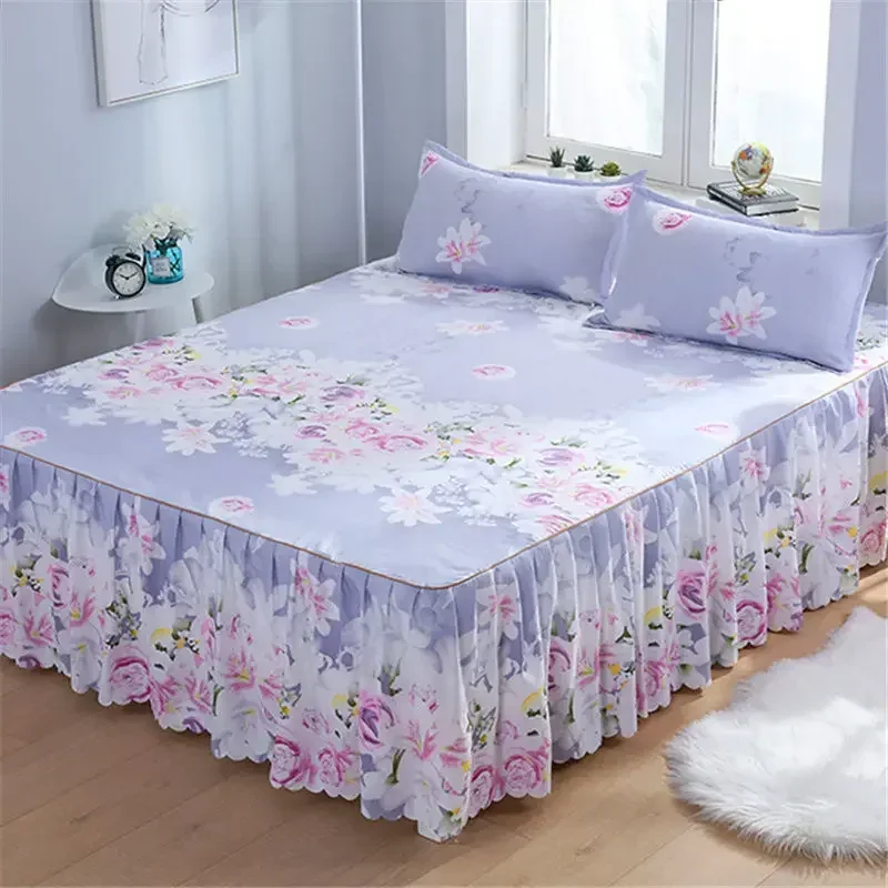 Conjunto de colcha de algodão bordado, saia de cama, fronhas, capa de folha, rei, rainha, duplo, 1.5 m, 1.8 m, 2m, 3pcs