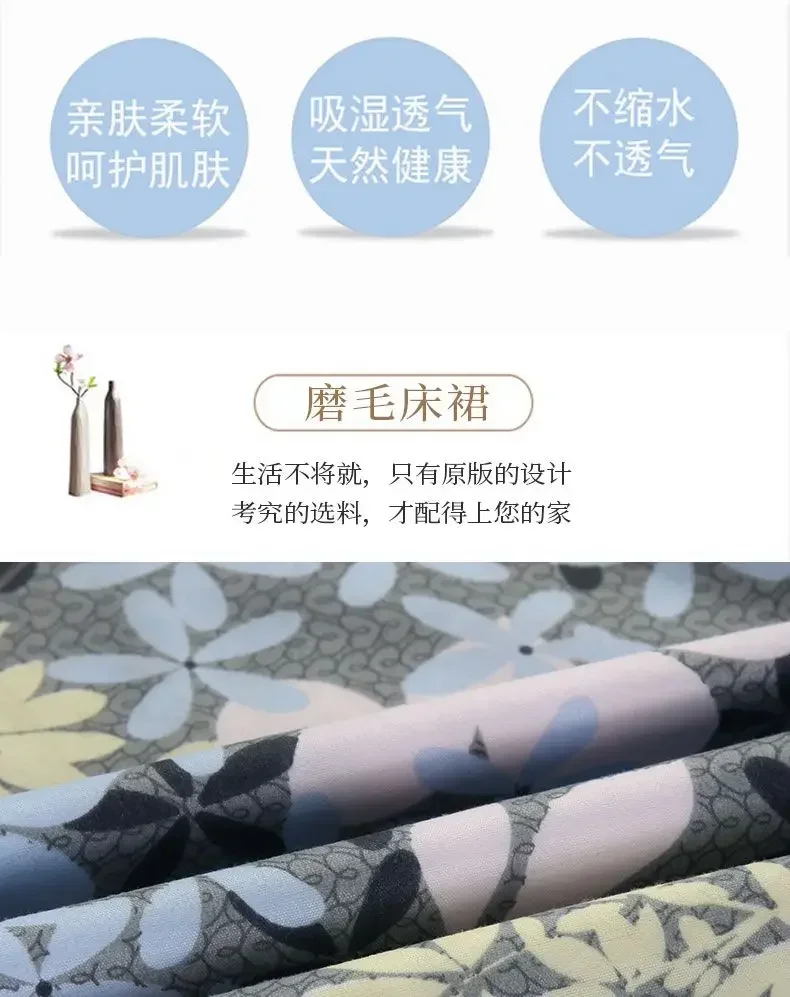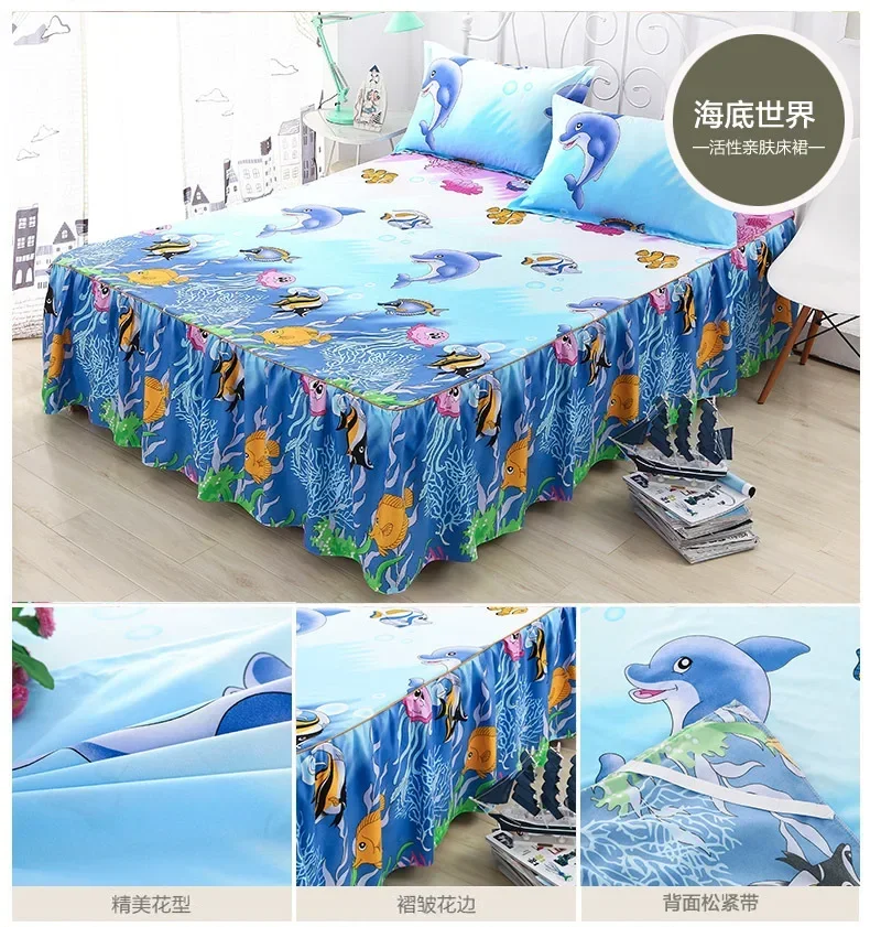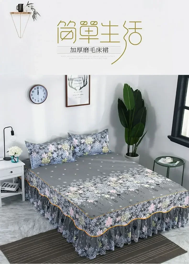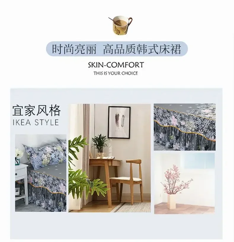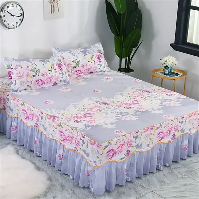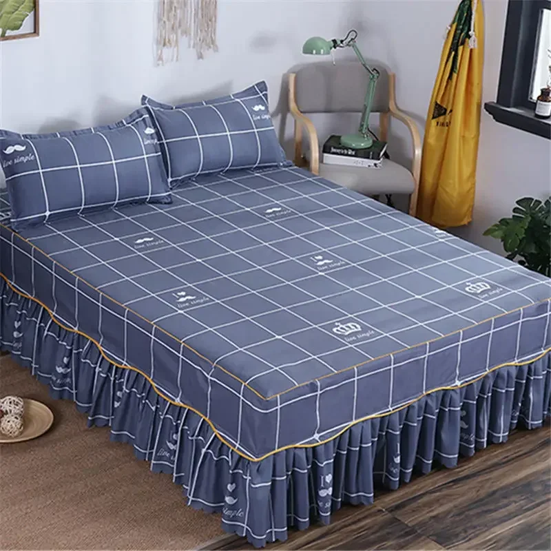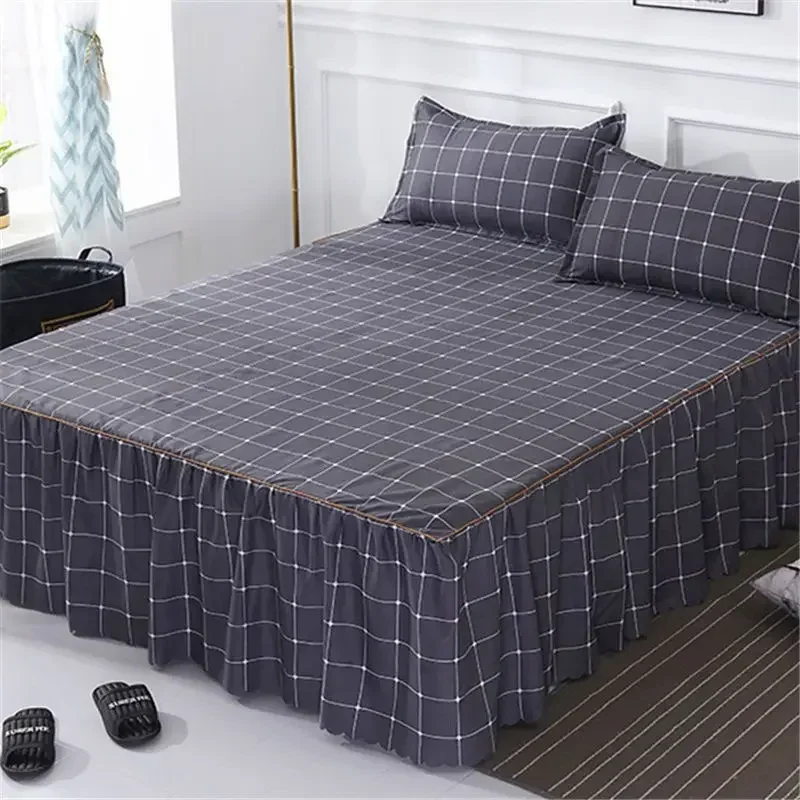 Conjunto de Colcha de Algodão com Bordado, Saia de Cama, Fronhas, Capa de Folha, Rei, Rainha, Duplo, 1.5 m, 1.8 m, 2m, 3 Peças por Conjunto