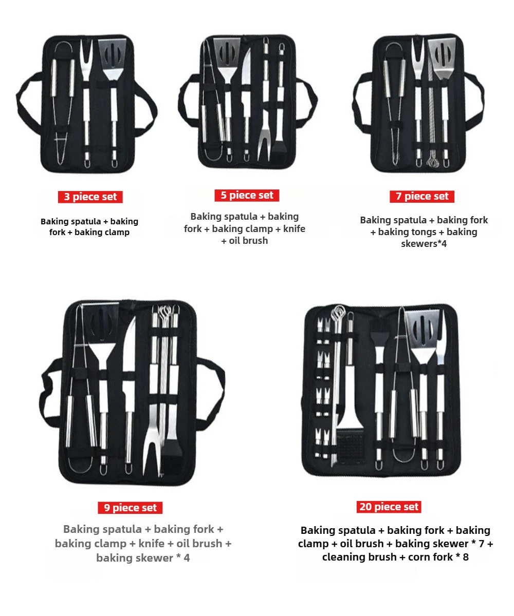 Conjunto de forno de aço inoxidável, ferramenta combinada, churrasco ao ar livre, conjunto de armazenamento, saco de pano portátil, acessórios de ferramentas