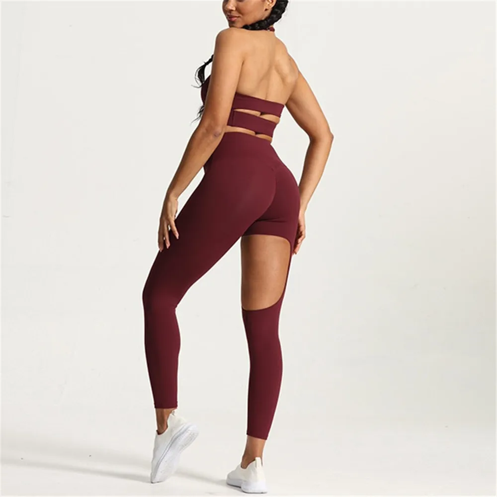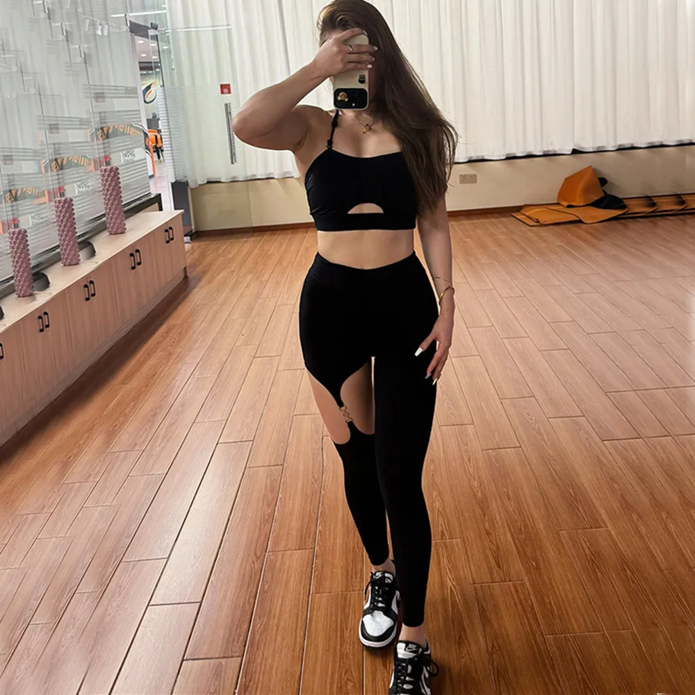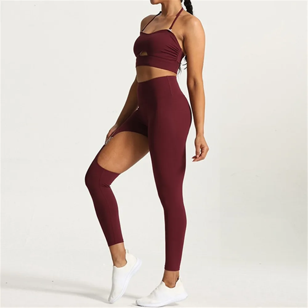 Conjunto de ioga de cintura alta para mulheres, sutiã esportivo, legging fitness, calça de treino, roupas para exercícios ativos, perneiras de ginástica, metal, 1 pc, 2pcs, 2024