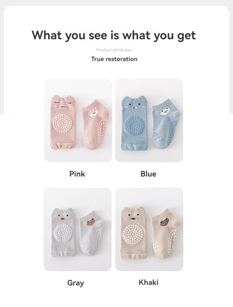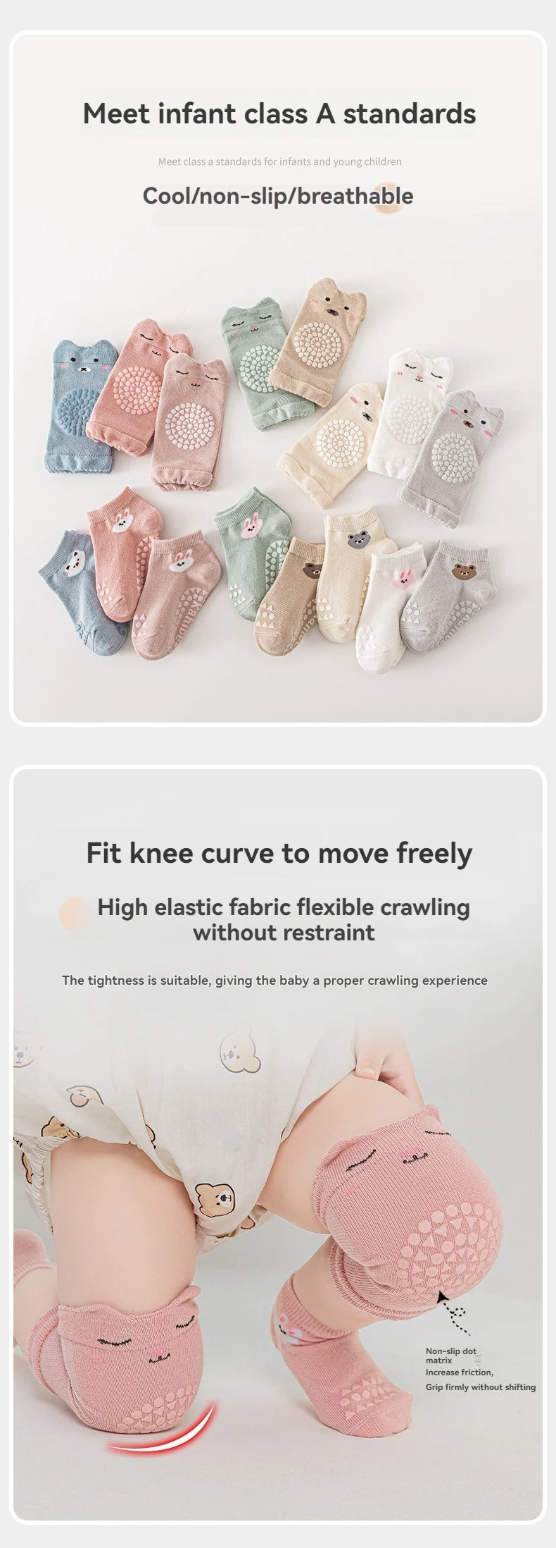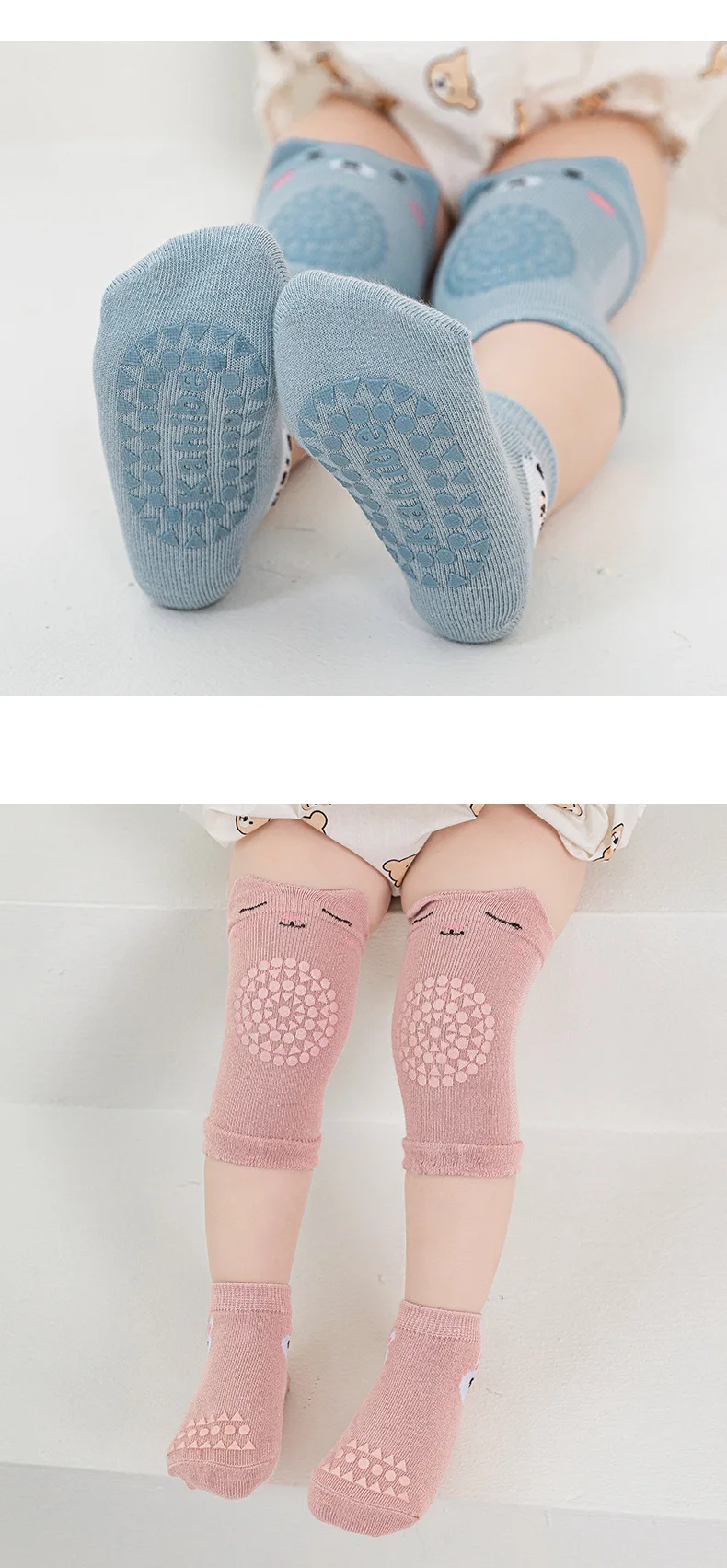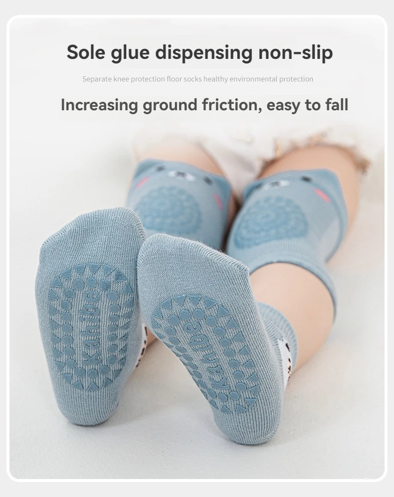 - > Conjunto de joelheiras e meias de chão para bebês, meias antiderrapantes para engatinhar para crianças, proteção esportiva para aprendizagem de caminhada, segurança infantil