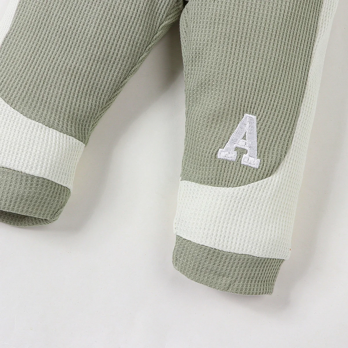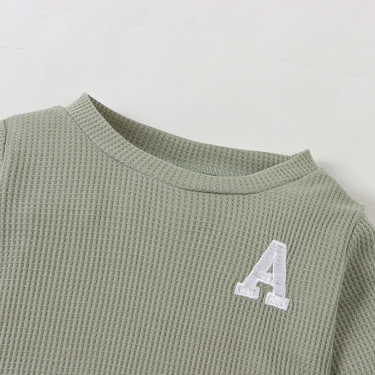 - > Conjunto de manga comprida com gola redonda e calças, estilo esportivo para bebês, bordado em linha A, moda fofa, outono e inverno