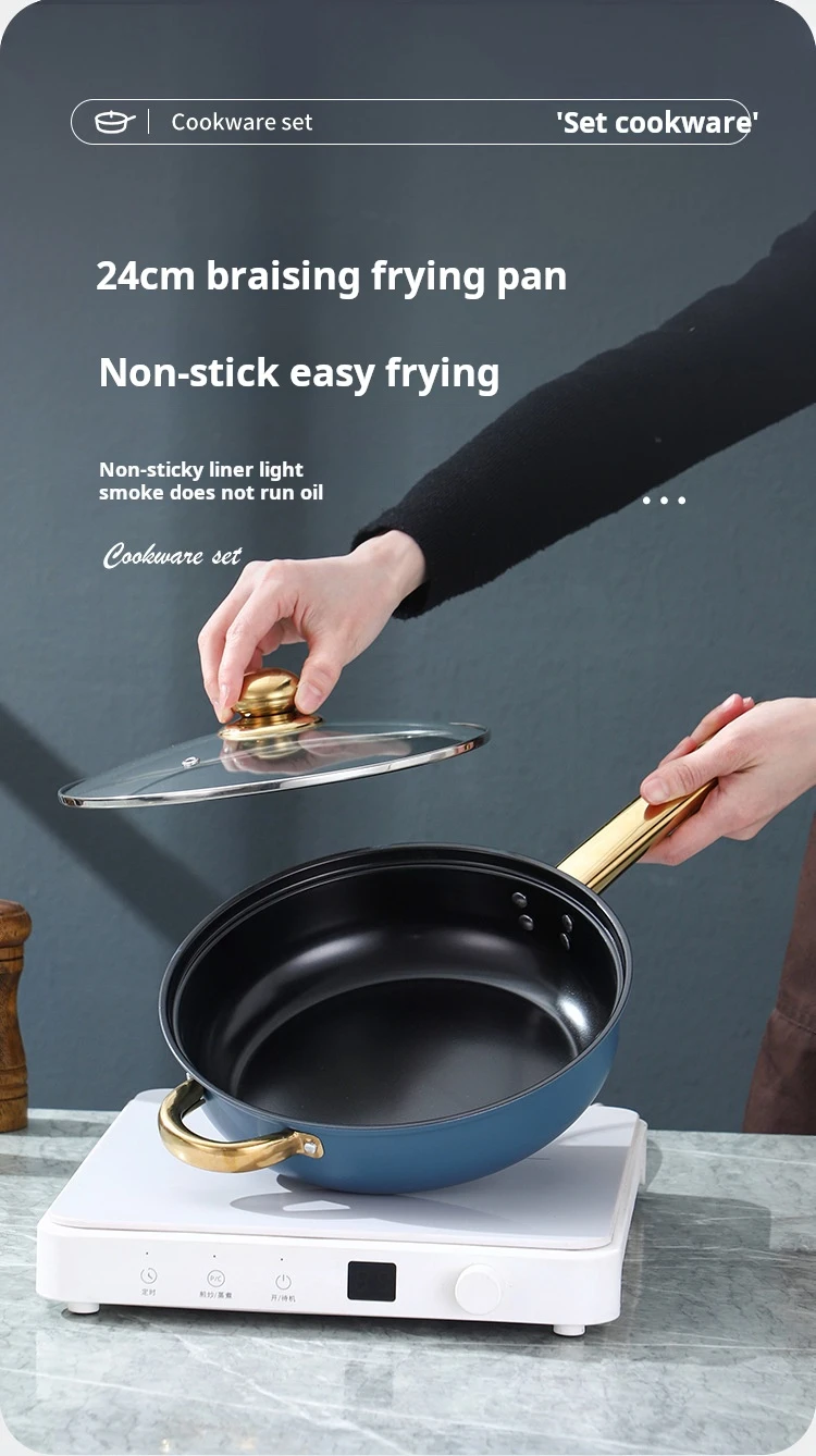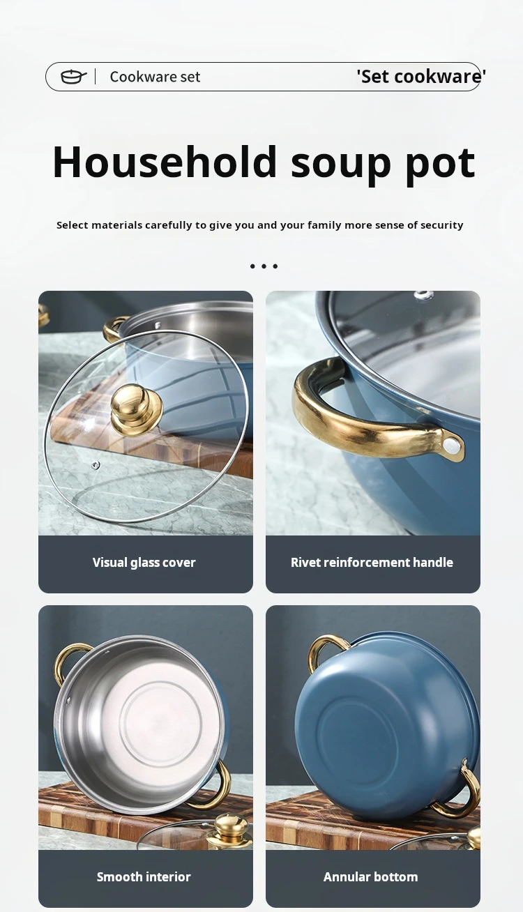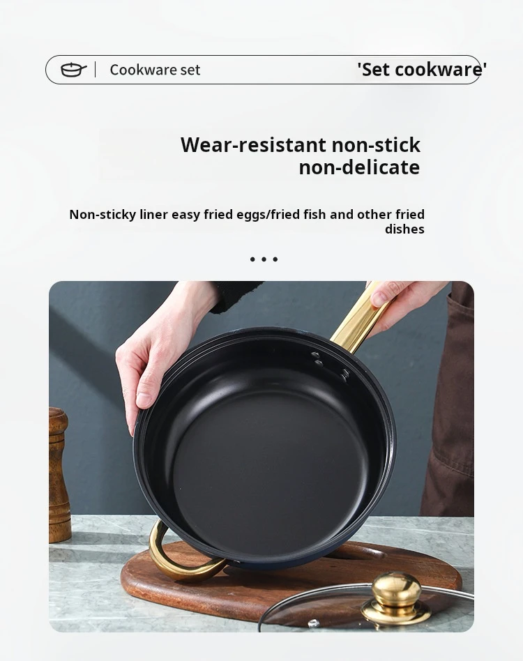 Conjunto de panelas de aço inoxidável de 12 peças, metal antiaderente, alça dourada, frigideira e panela, conjunto para uso na cozinha