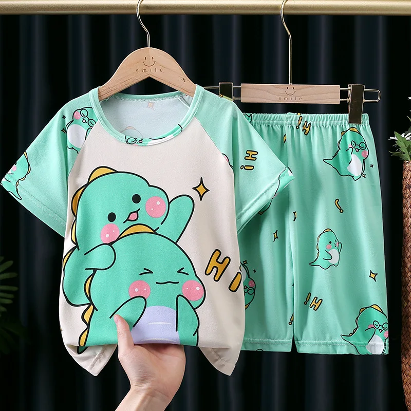 - > Conjunto de pijamas de manga curta infantil, roupa de menino, roupa de dormir infantil, verão
