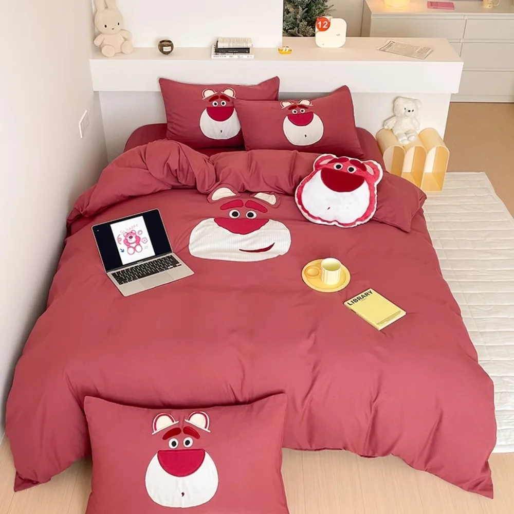 Conjunto de quarto de morango urso e ponto 2/3 peças, presente infantil, adolescentes, cama de casal de microfibra com capa de edredom com zíper ? ?