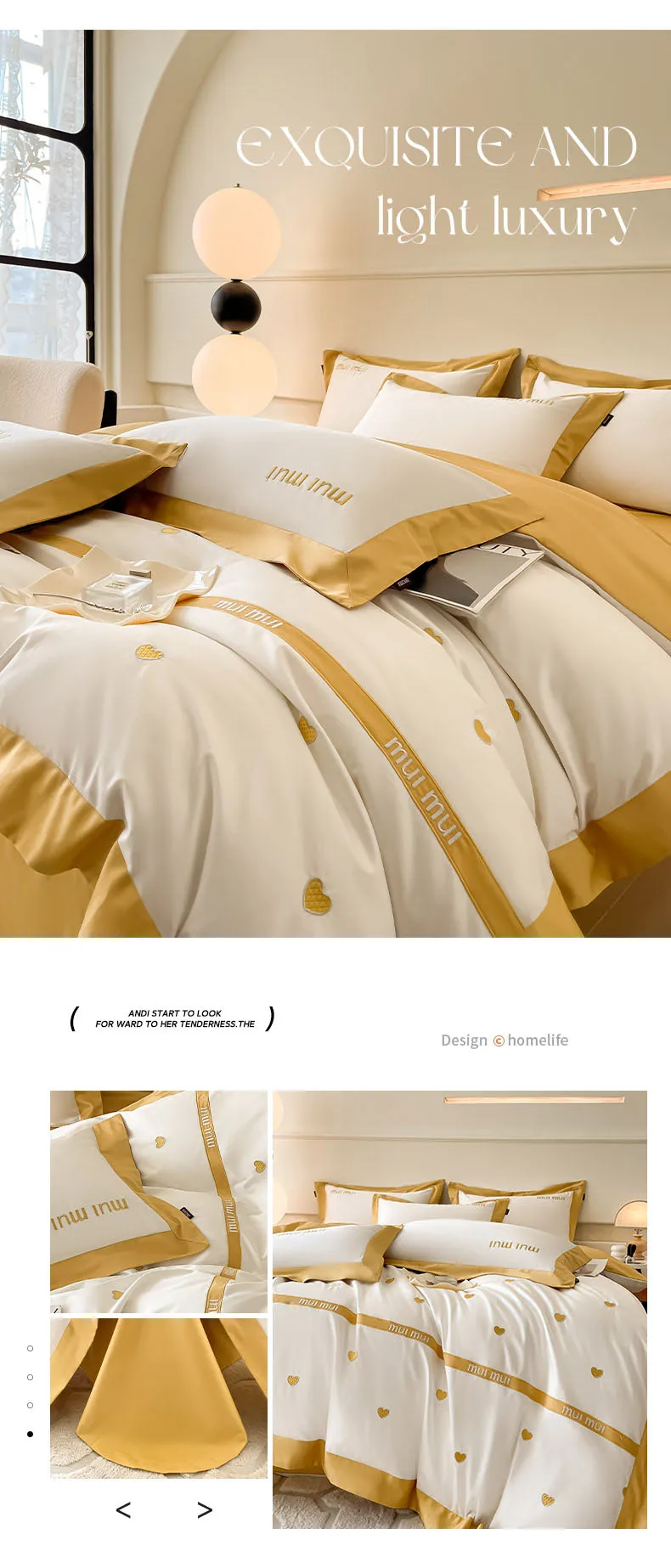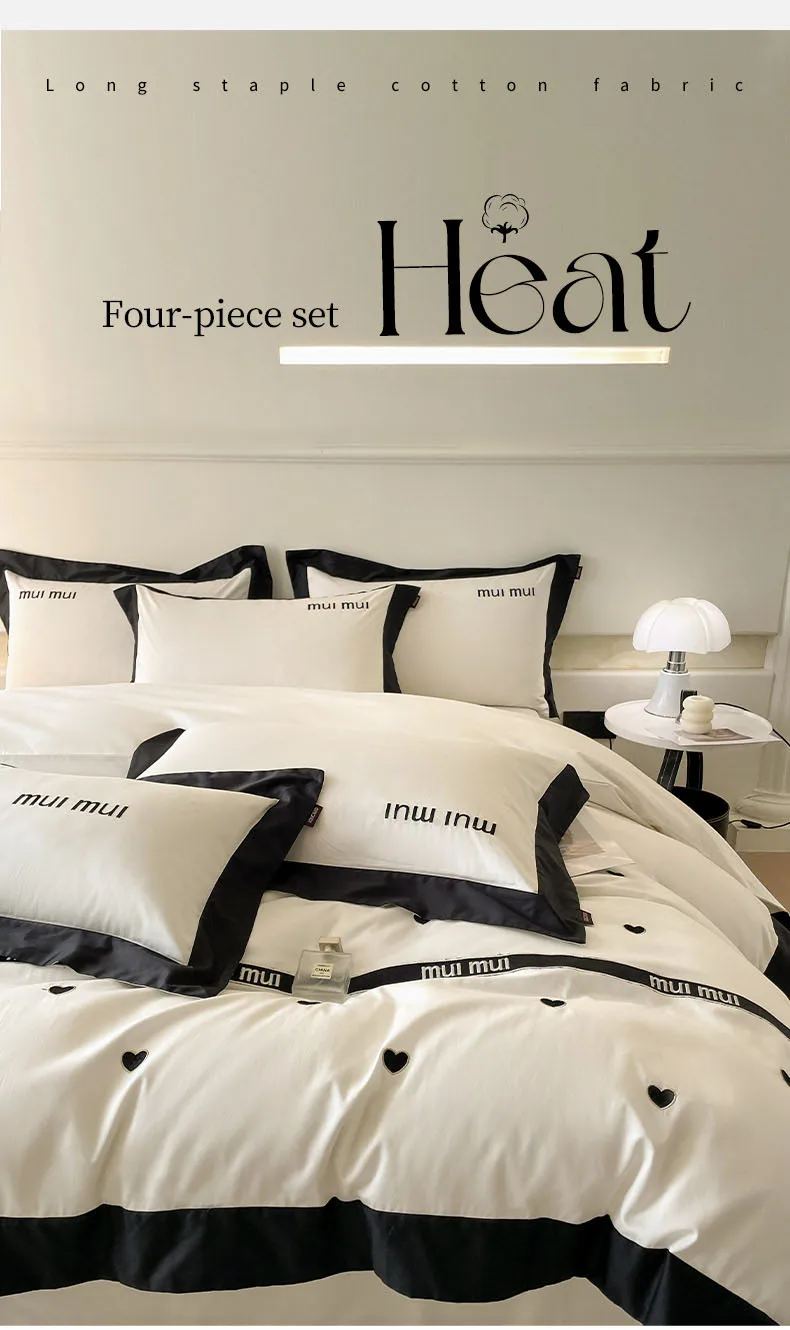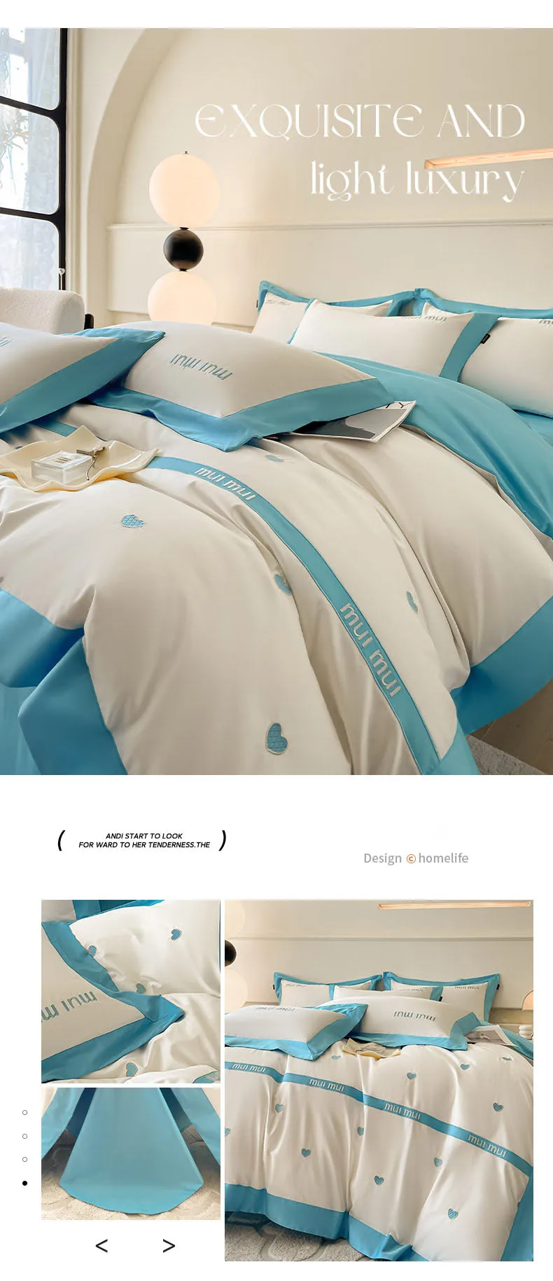Conjunto de quatro peças de algodão grampeado longo para mãe e bebê, lençóis bordados emendados, capas de colcha, cama de alta qualidade