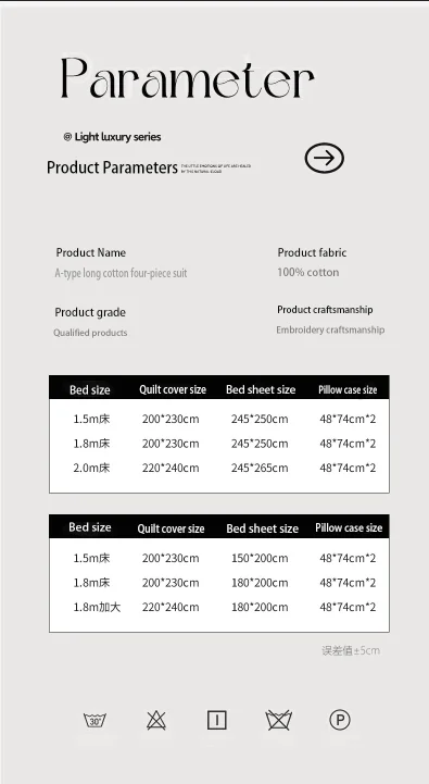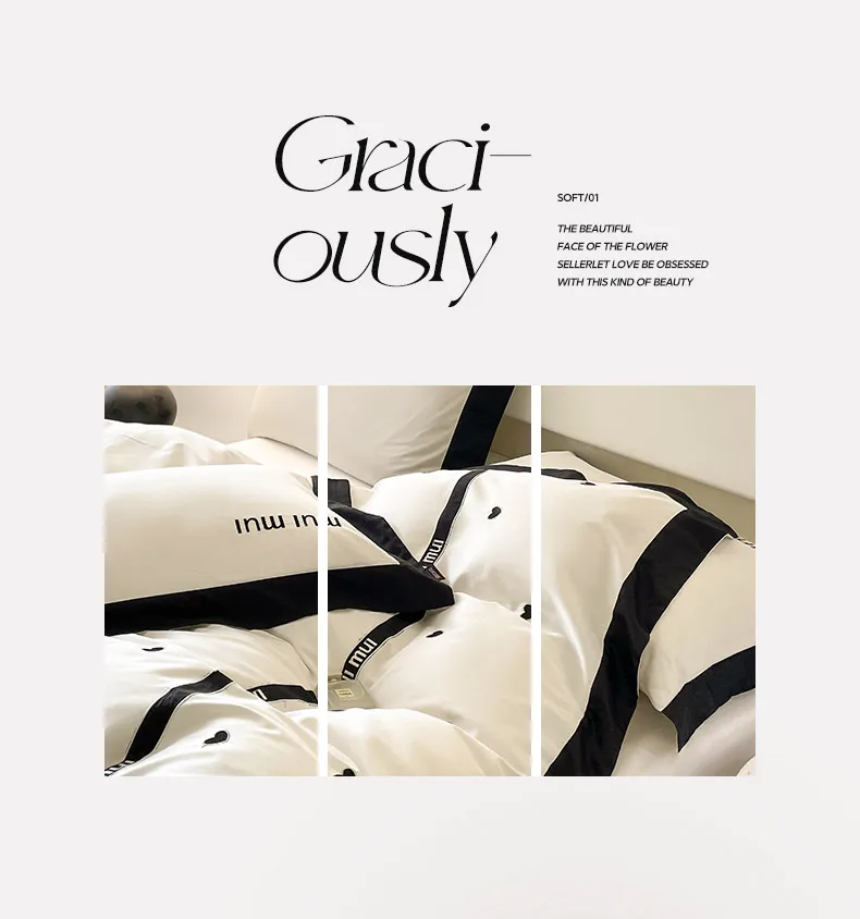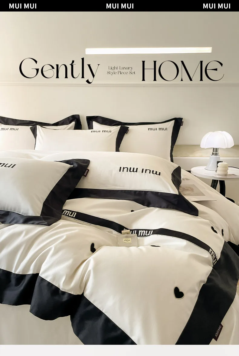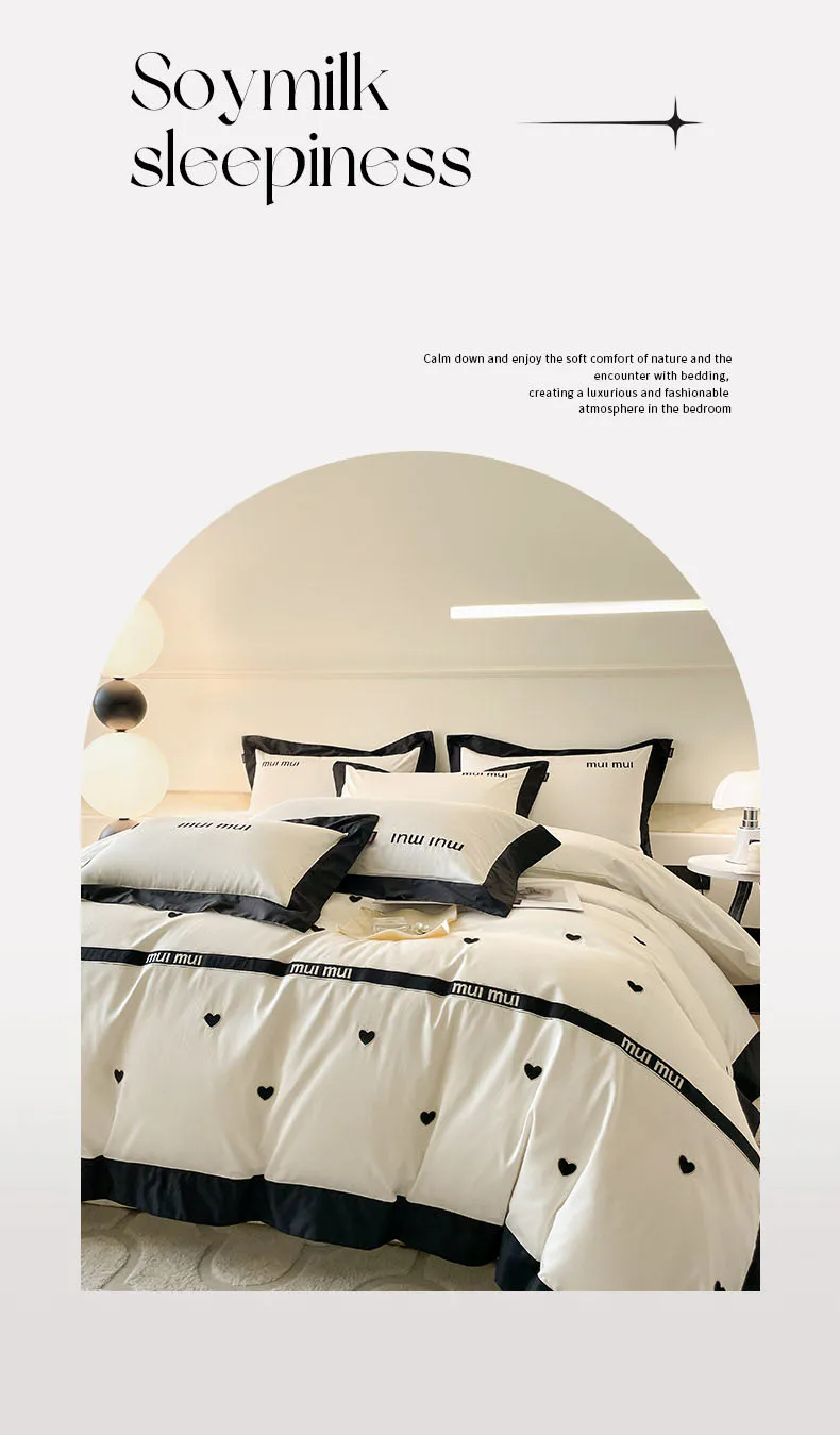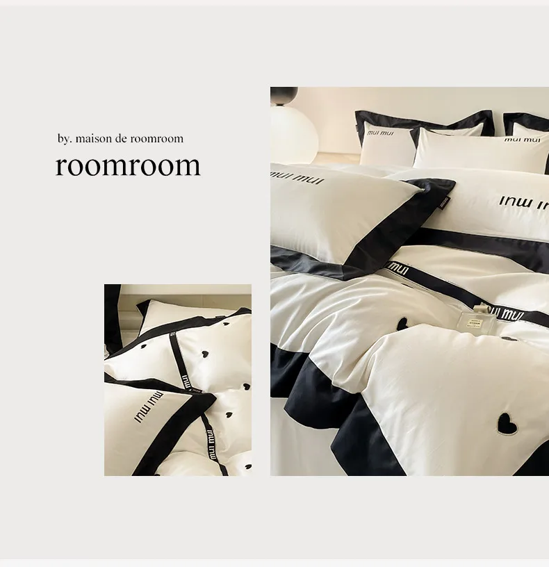 Conjunto de quatro peças de algodão grampeado longo para mãe e bebê, lençóis bordados emendados, capas de colcha, cama de alta qualidade