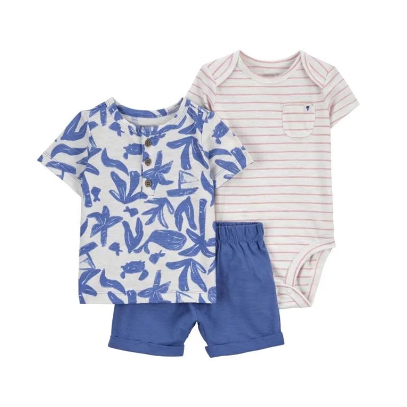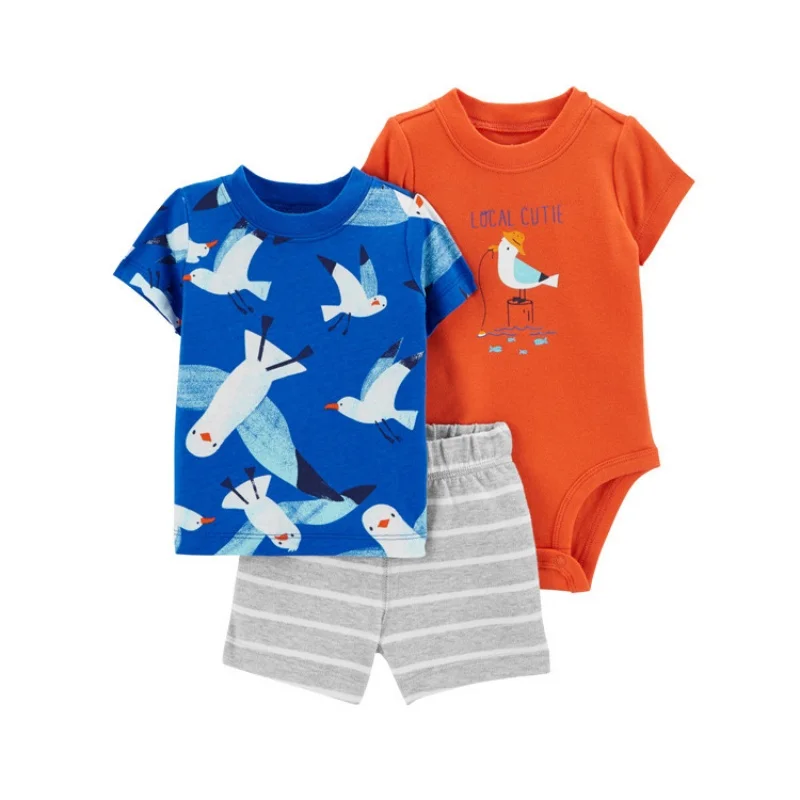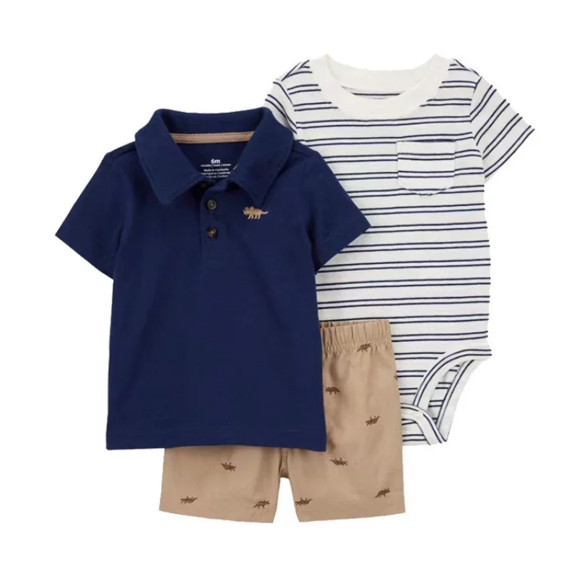 - > Conjunto de roupas de algodão do bebê recém-nascido, dinossauro bonito dos desenhos animados, manga curta, shorts, macacão, roupas infantis, 6-24m, verão