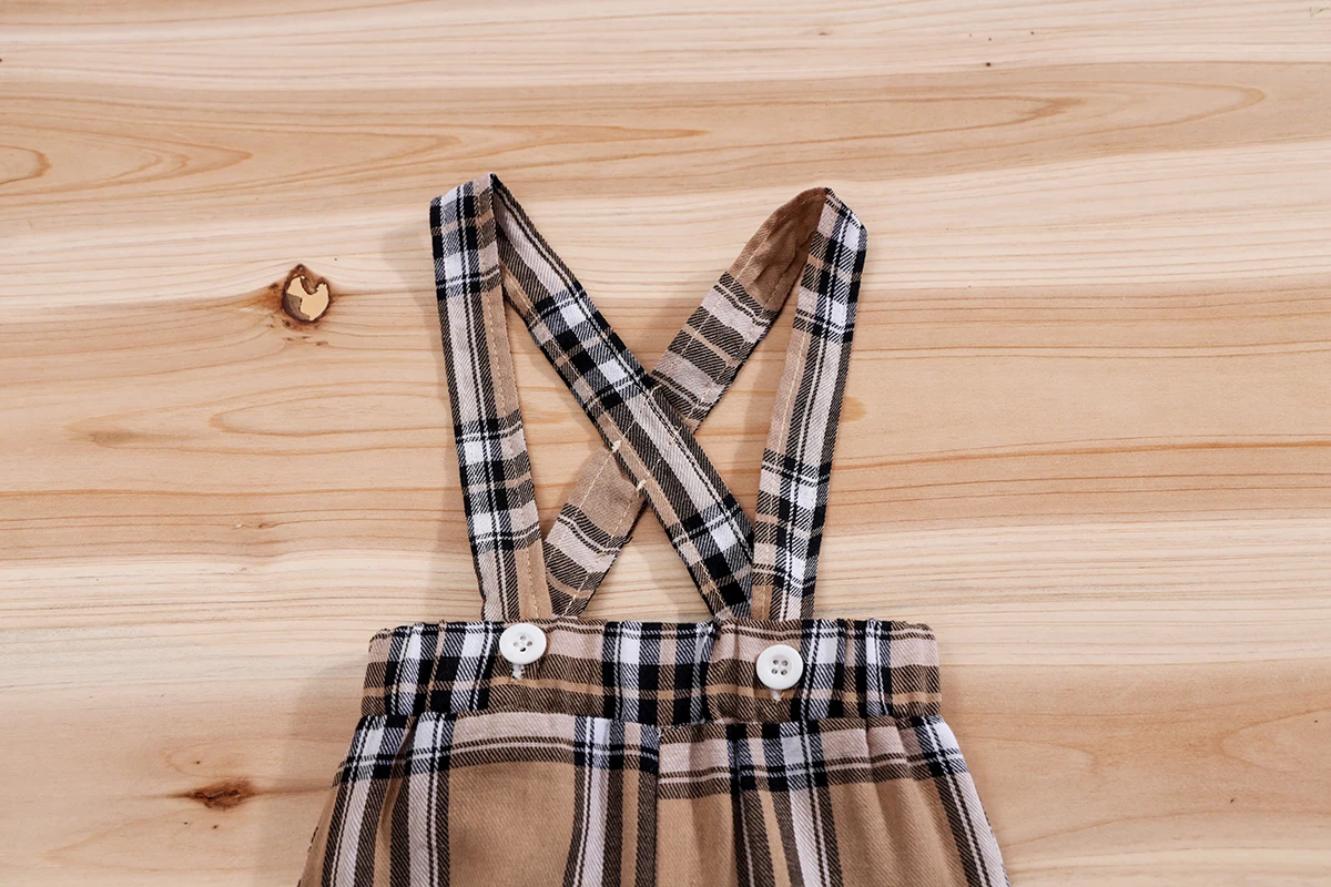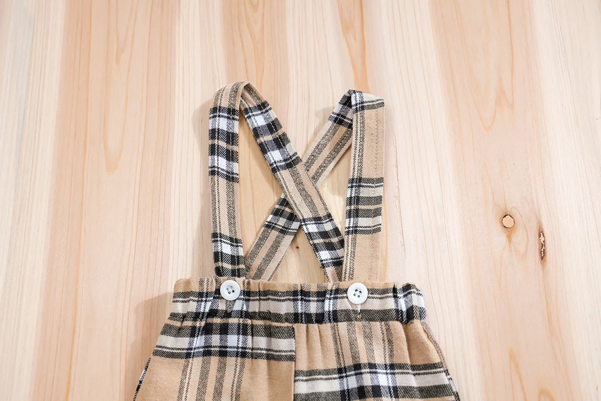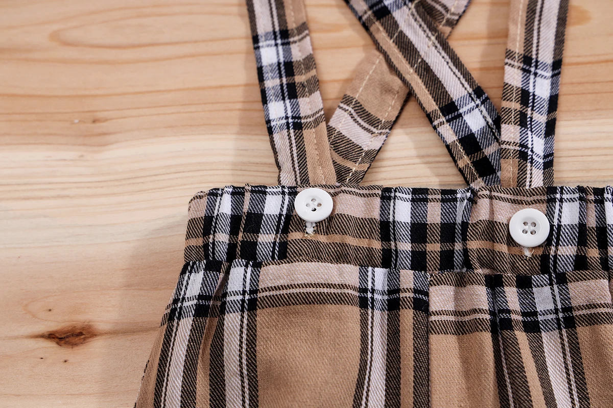 Apresentando nossos conjuntos de tops para bebês recém-nascidos Handsomer + estercos, o urso xadrez de manga curta estampado é feito de 97% poliéster + 3% elastano, os suspensórios curtos xadrez são feitos de 100% poliéster, que não é apenas fofo, mas também confortável, tornando-os muito adequados para roupas de verão, lindo urso de desenho animado para crianças. São adequados para diversas ocasiões, como aniversários, chás de bebê, festas e passeios em família, e também são a escolha ideal para uso diário em casa ou ao ar livre. Seja passando um dia na praia, fazendo um piquenique no parque ou capturando momentos preciosos através da fotografia, esses looks são versáteis e práticos. Hoje, use este charmoso conjunto para realçar o guarda-roupa do seu bebé!