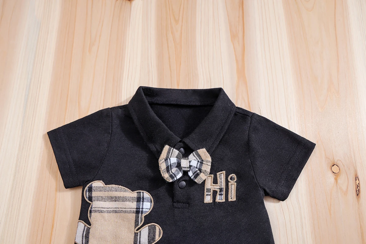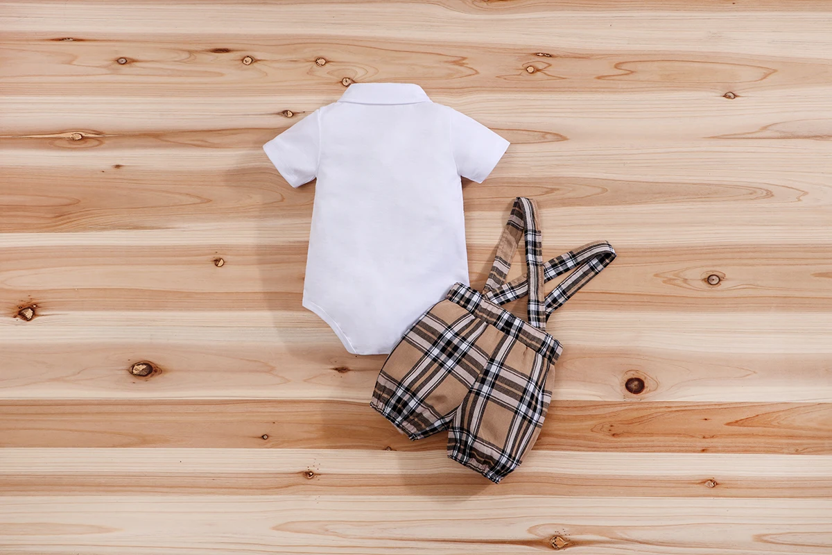 - > Conjunto de roupas de bebê murnxb, 2 peças, manga curta, meninos, infantil, xadrez, urso, body + suspensórios, calças, conjunto geral, roupas para recém-nascidos de 1 a 18 meses