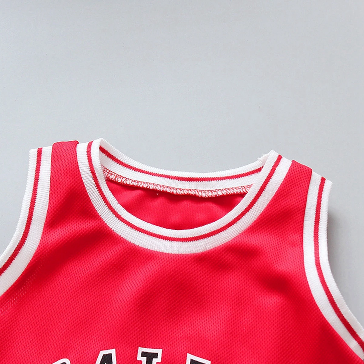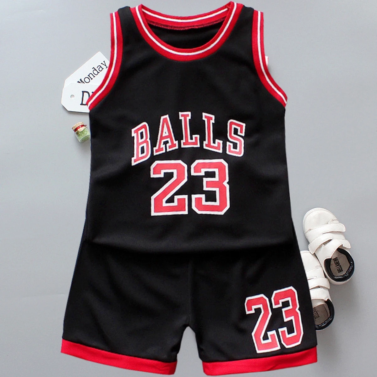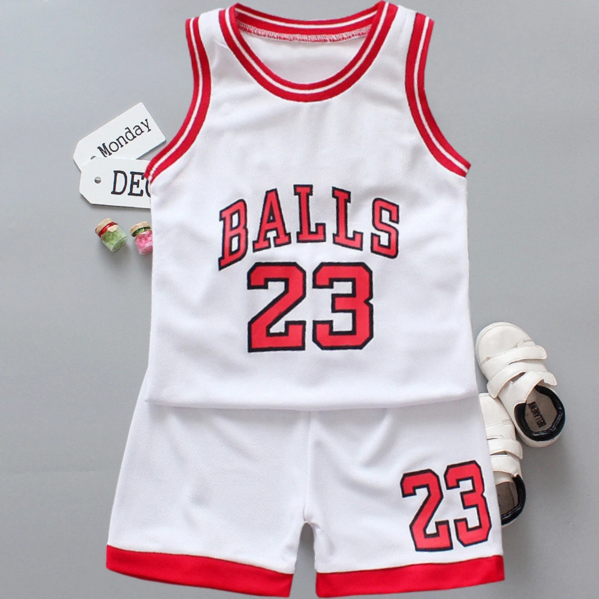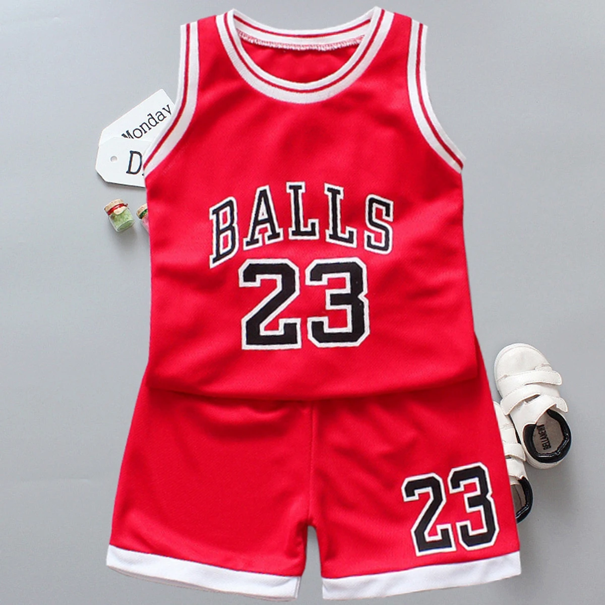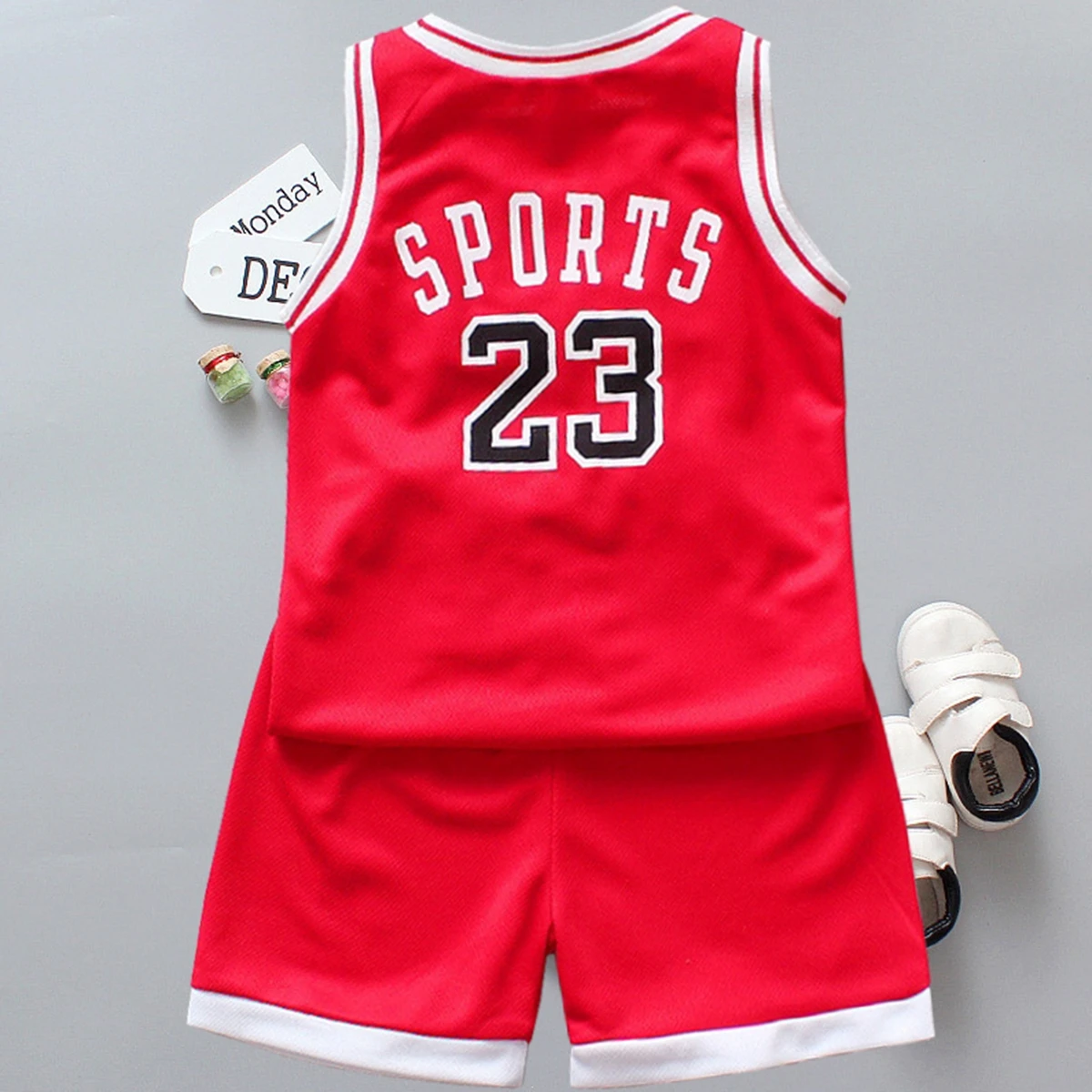 - > Conjunto de roupas infantis de verão, roupas esportivas de basquete, tops sem mangas + shorts, 2 peças/terno, meninos e meninas