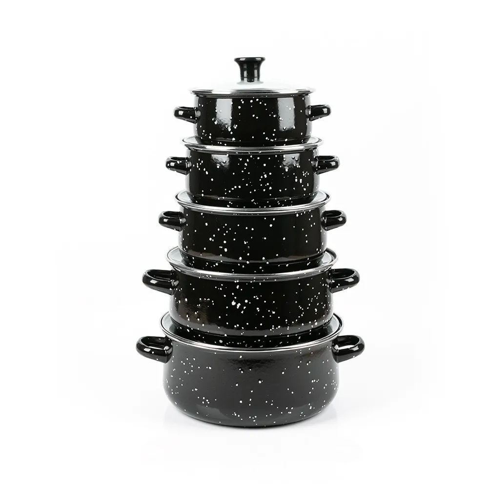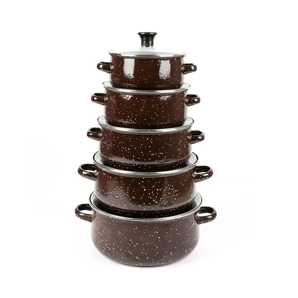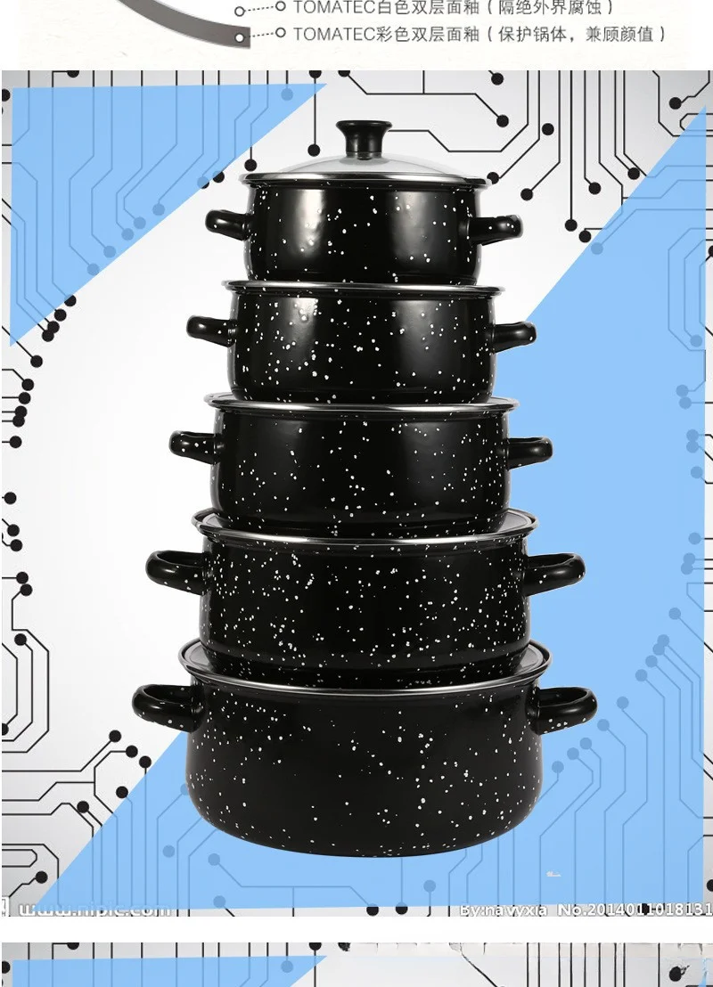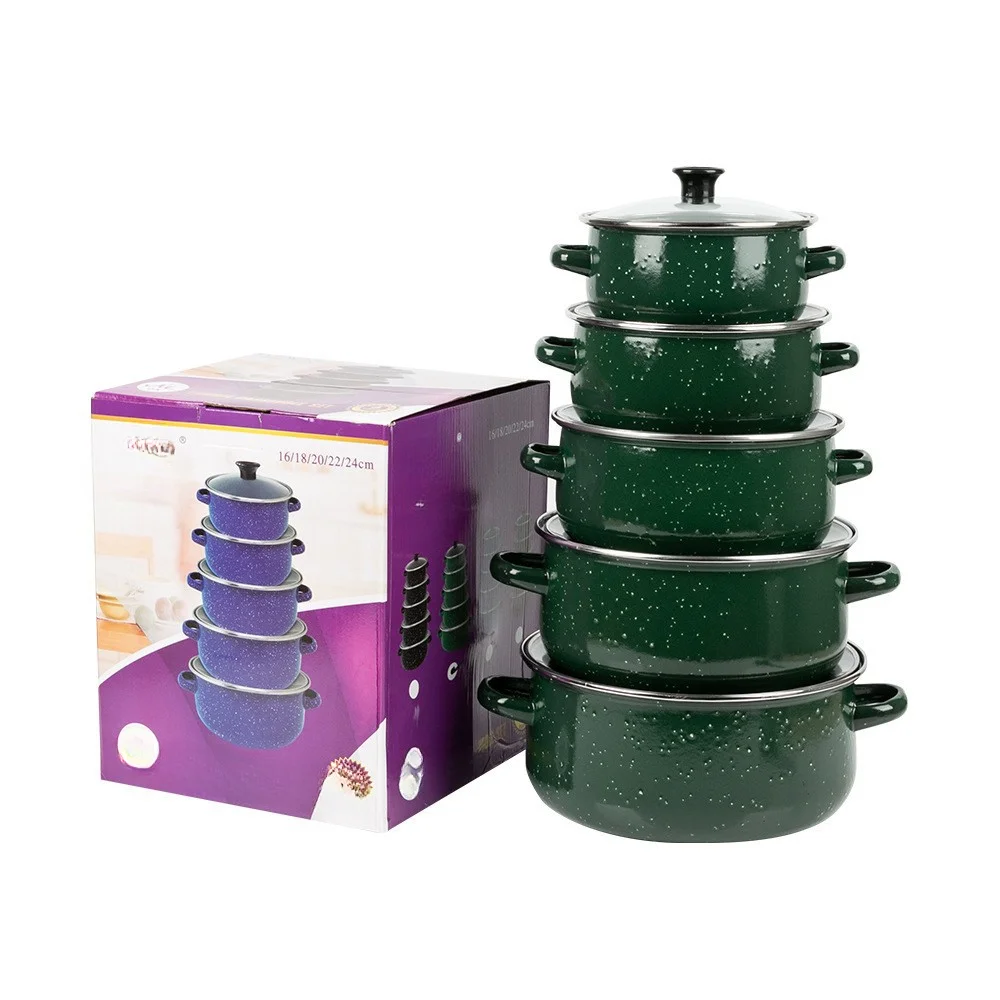 Conjunto de sopa de esmalte, caroço preto verde azul marrom, Europa e Estados Unidos, 2 orelhas, 5 conjuntos