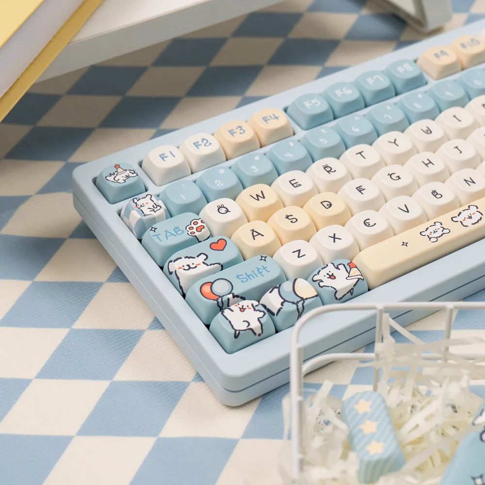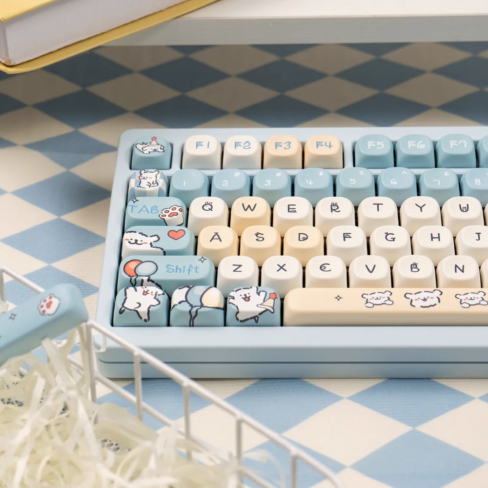 Conjunto de teclas de cachorrinho com linha de 136 teclas PBT tipo fofo MOA Keycap compatível com interruptor MX Wooting teclado mecânico