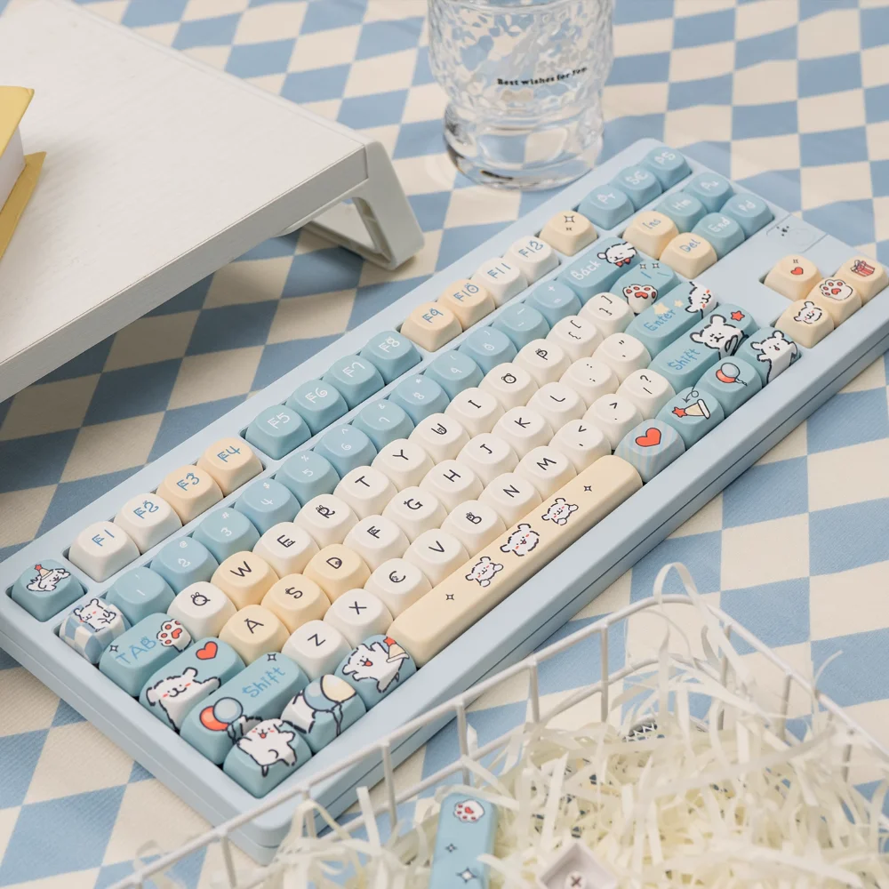 - > Conjunto de teclas de cachorrinho com linha de 136 teclas PBT tipo fofo MOA Keycap compatível com interruptor MX Wooting teclado mecânico