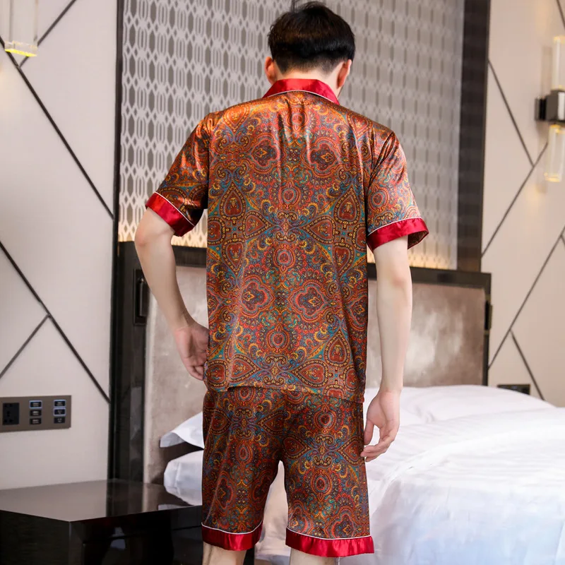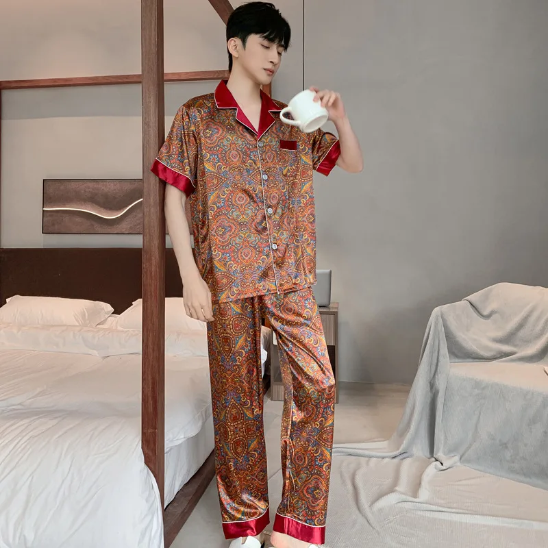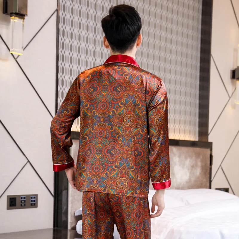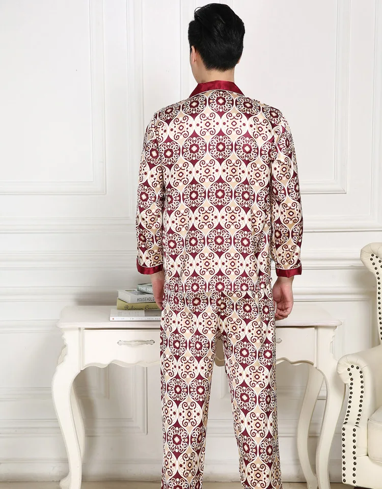 Conjuntos de pijama masculino de cetim de seda manga comprida, pijamas masculinos, camisola estampada, Casa, Soft Cozy Sleepwear Calças, Novo