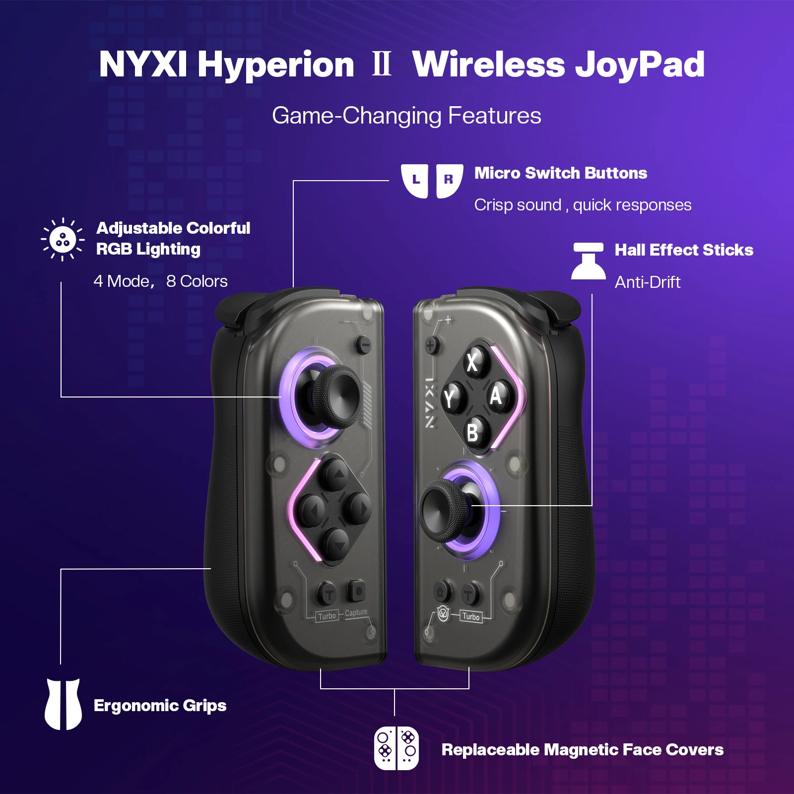 Controlador de jogo sem fio NYXI-Hyperion 2 Dual Hall Joycon Gamepad compatível com Nintendo Switch 2 Switch OLED e Switch Lite
