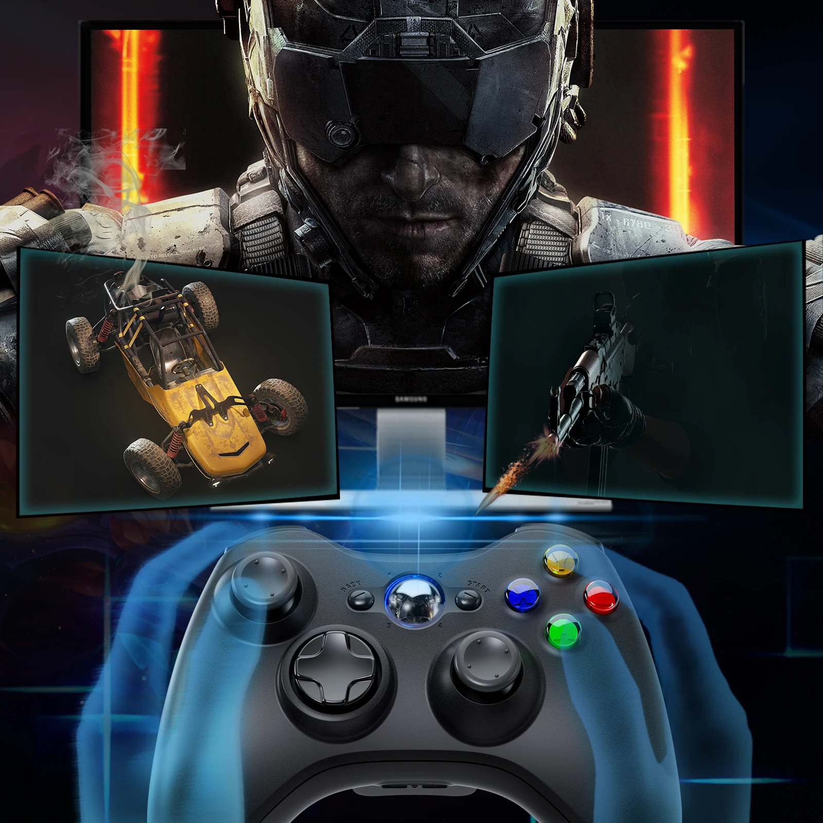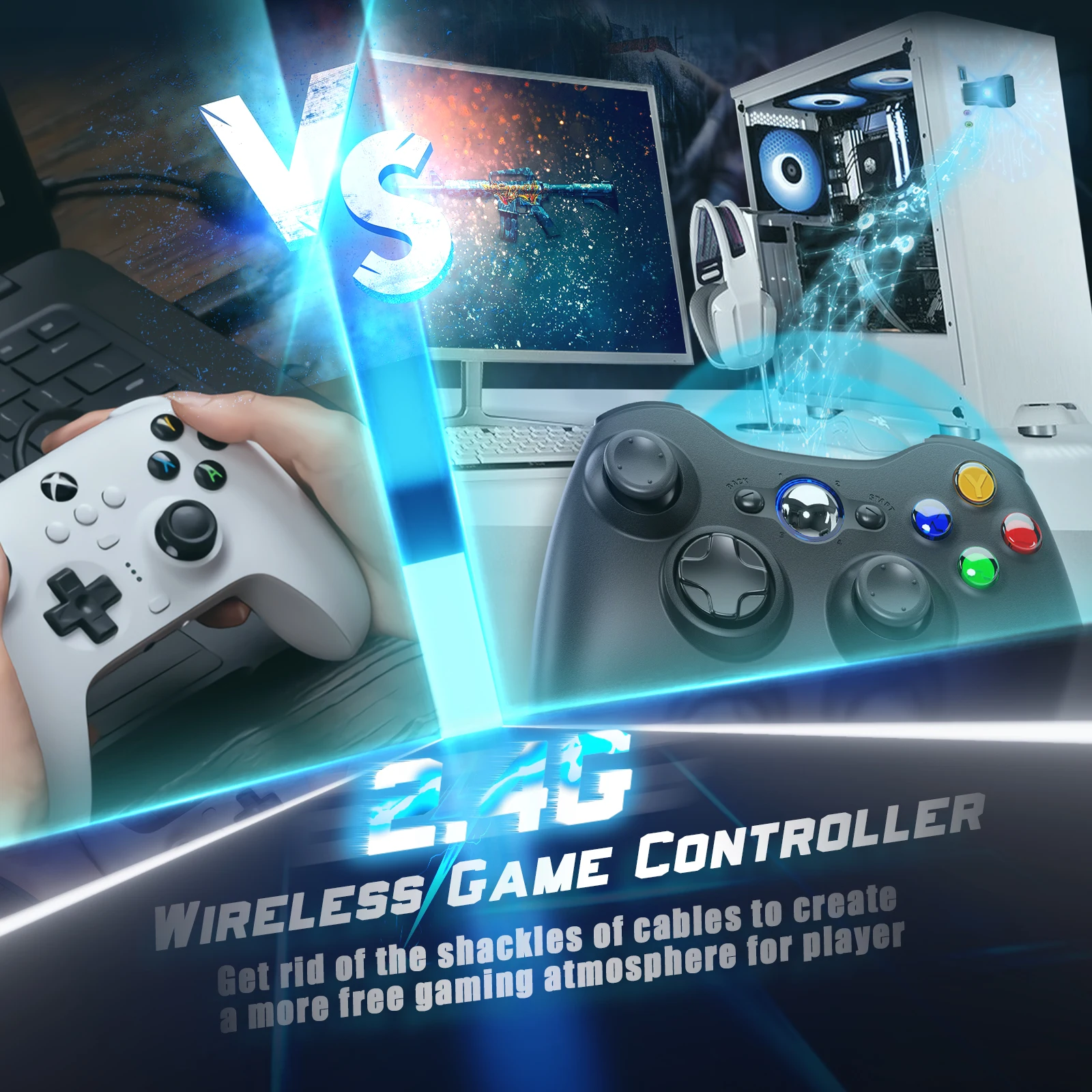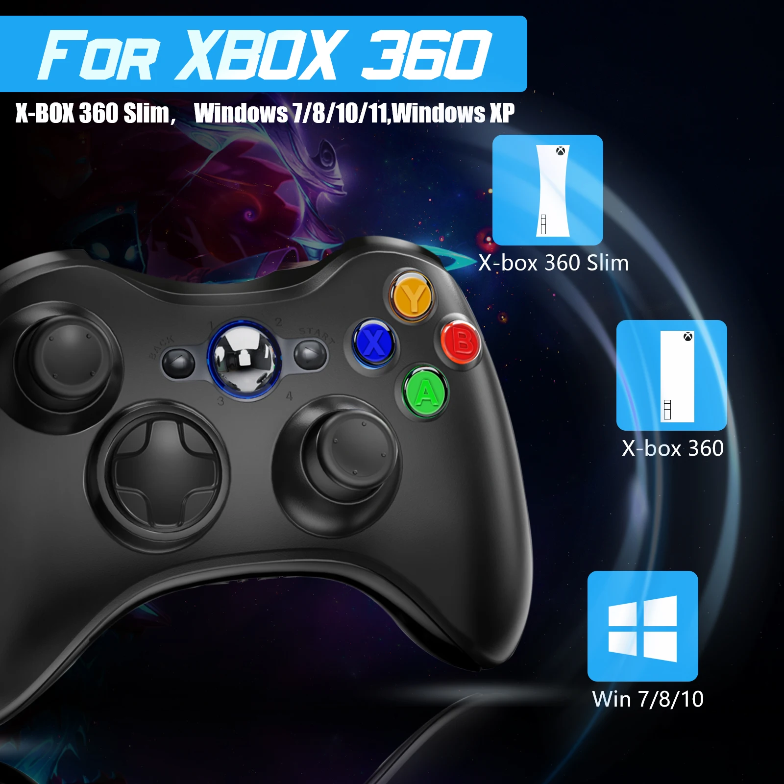 Controlador de jogos sem fio para Xbox 360, PC Gamepads, Joystick de vibração dupla, suporta Microsoft Windows, 2.4G