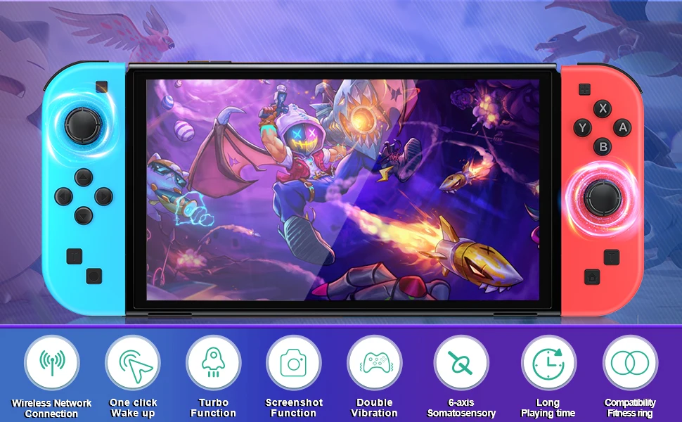 Controlador para ns joycons-bt gamepad sem fio para switch, vibração turbo acordar alça de jogo joystick controle de videogame