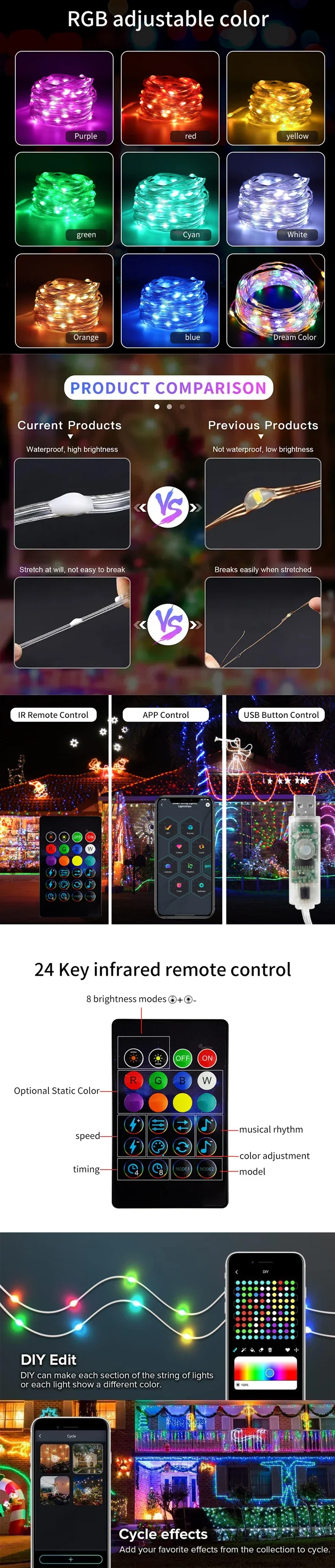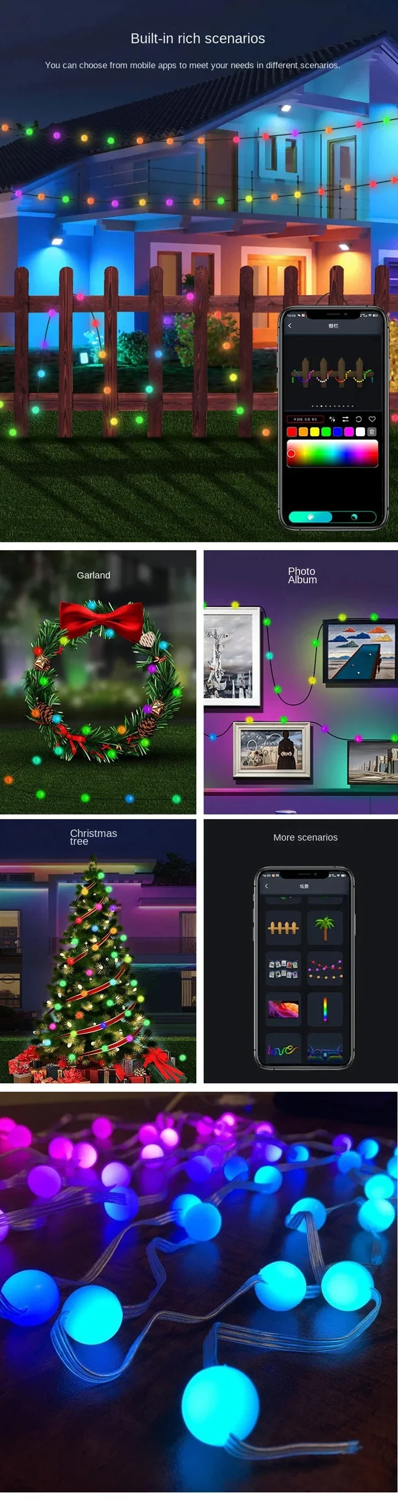 Você pode DIY a cor e o brilho da corda de luz, escolher quantas contas de luz são brilhantes e a cor de cada conta de luz e salvar as configurações DIY, que são muito inteligentes.