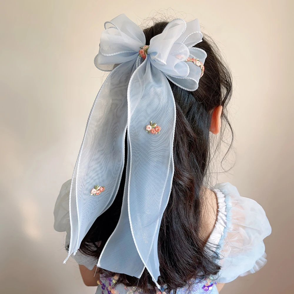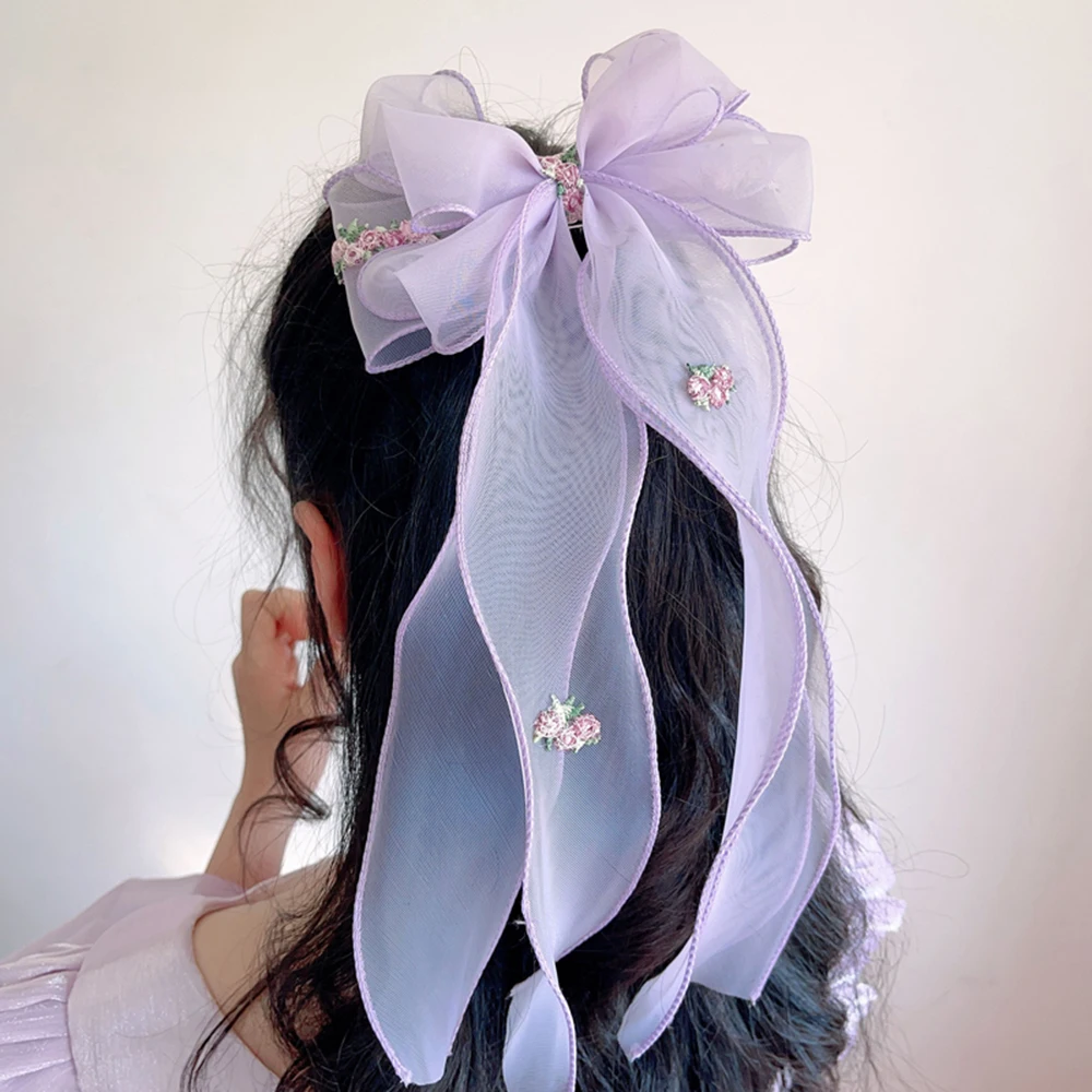 - > Coreano crianças trançado hairpin bordado floral acessórios de cabelo princesa menina rabo de cavalo cocar clipe superior para crianças
