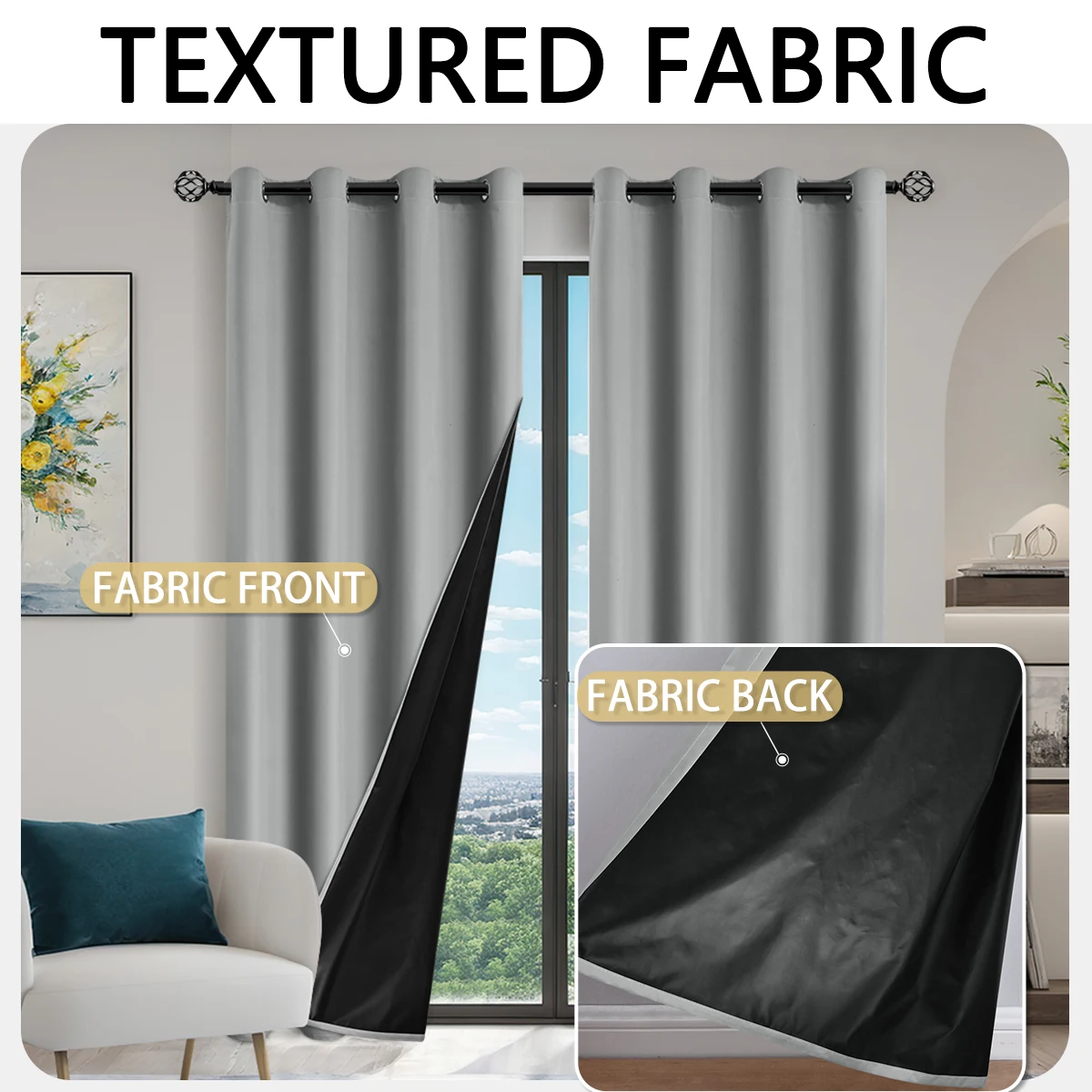 Atenção: Esta cortina tem bom sombreamento, mas o tecido é relativamente fino e leve. O filme preto está na parte de trás da cortina e é uma única camada.