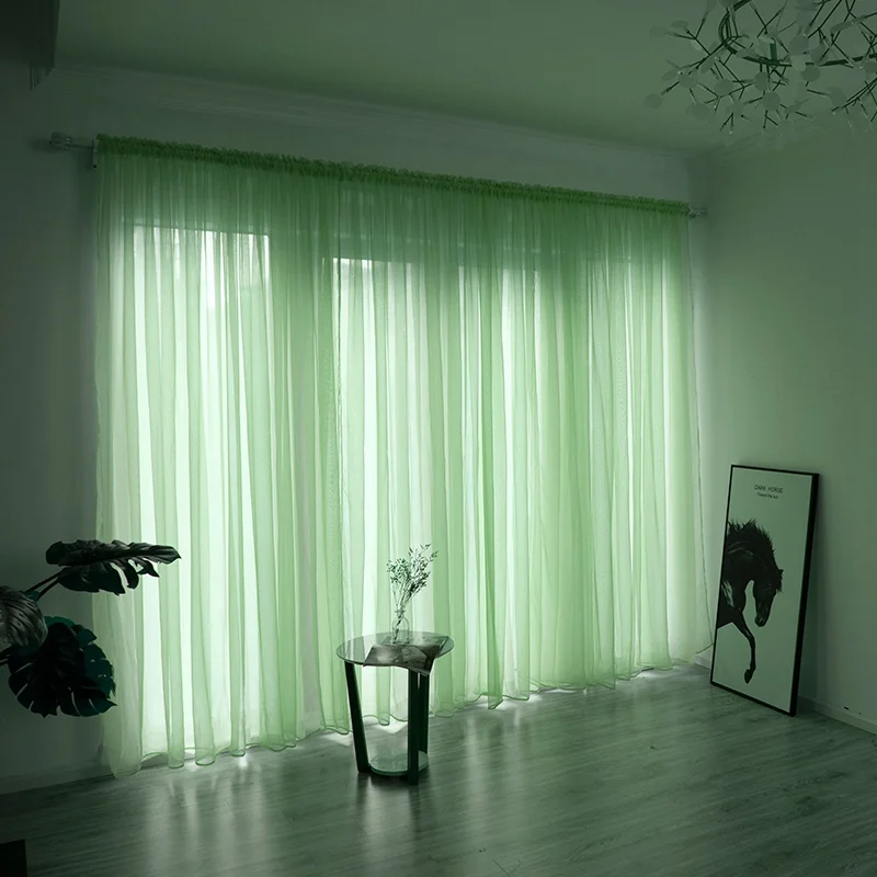 Cortinas transparentes de tule para sala de estar, cortina transparente para janela, haste de bolso, painel de quarto, decoração de tecido