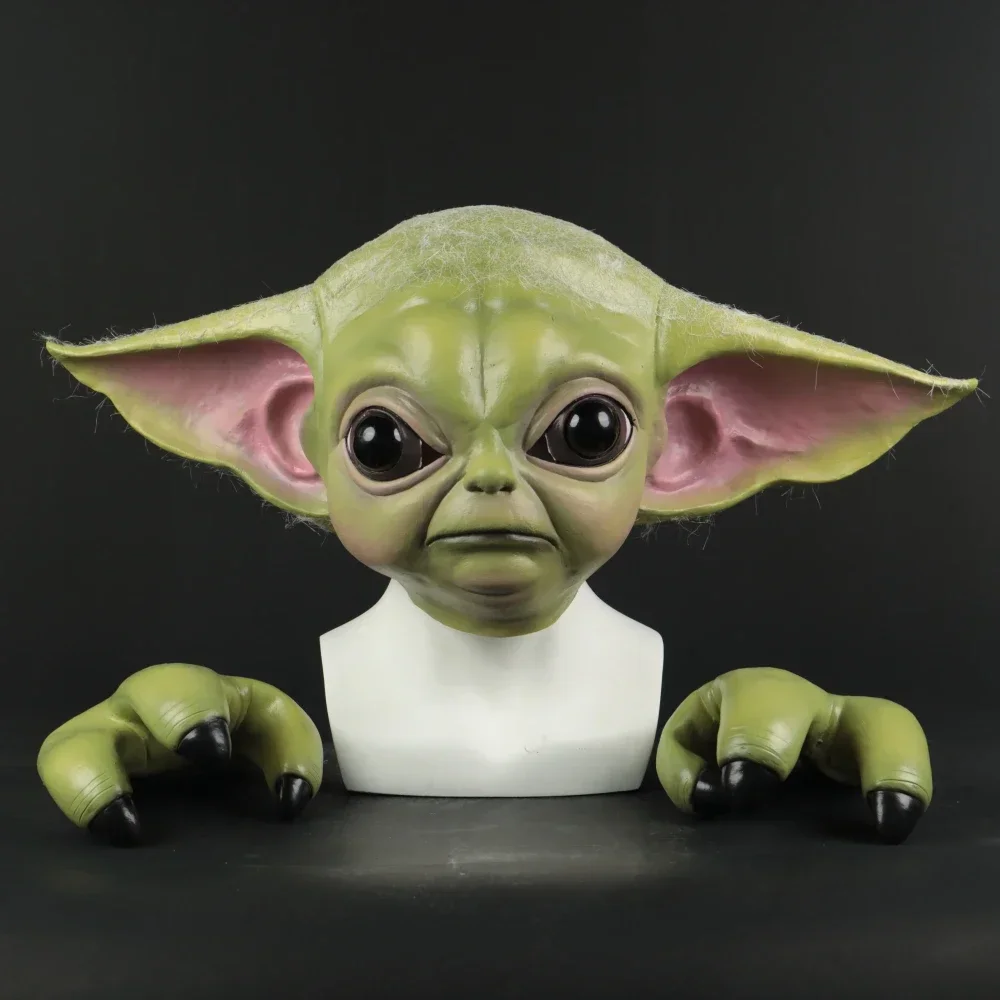 Cosplay bebê yoda máscara luvas halloween máscaras de látex fantasia vestido yoda capacete chapelaria adulto cabeça cheia