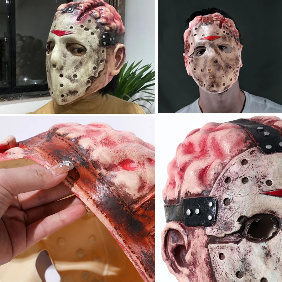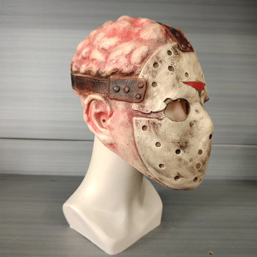 Cosplay jason voorhees sexta-feira 13th estrutura cerebral cabeça capa assustador horror engraçado máscara de halloween rosto cheio festa traje prop