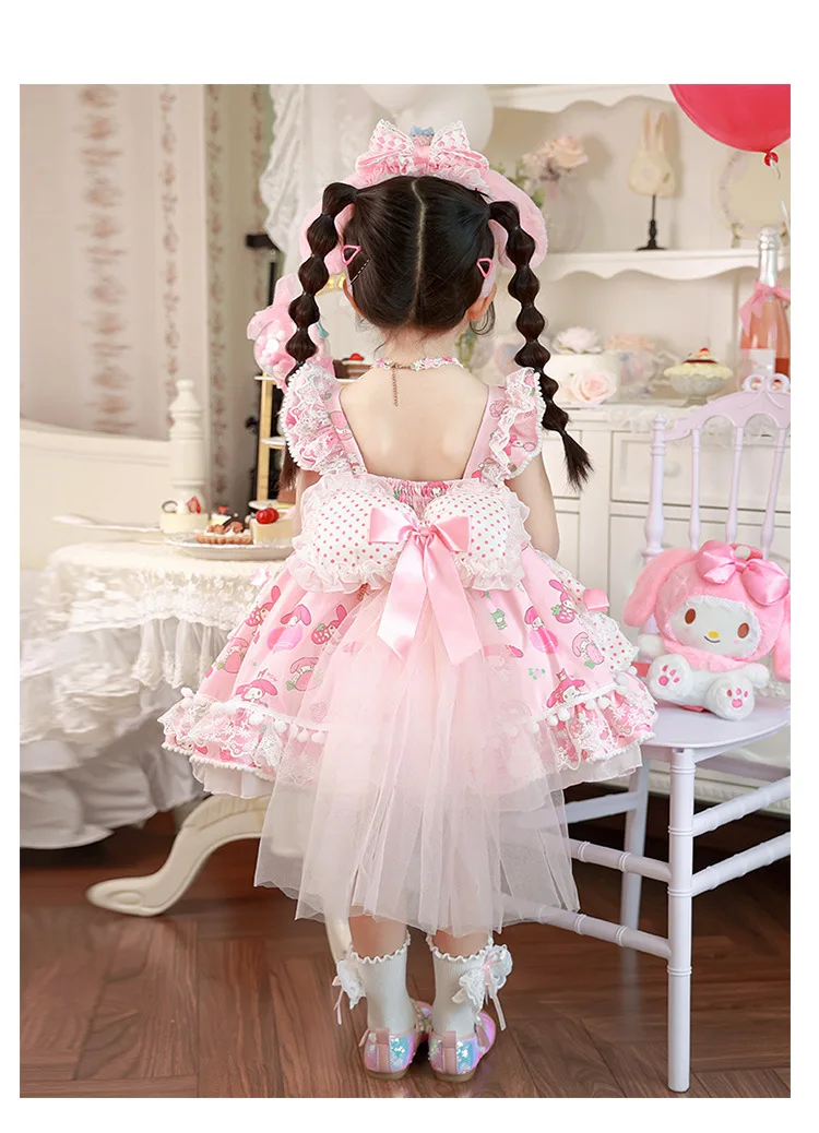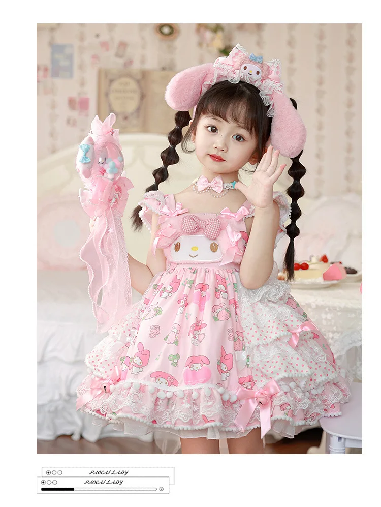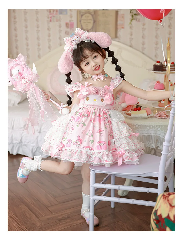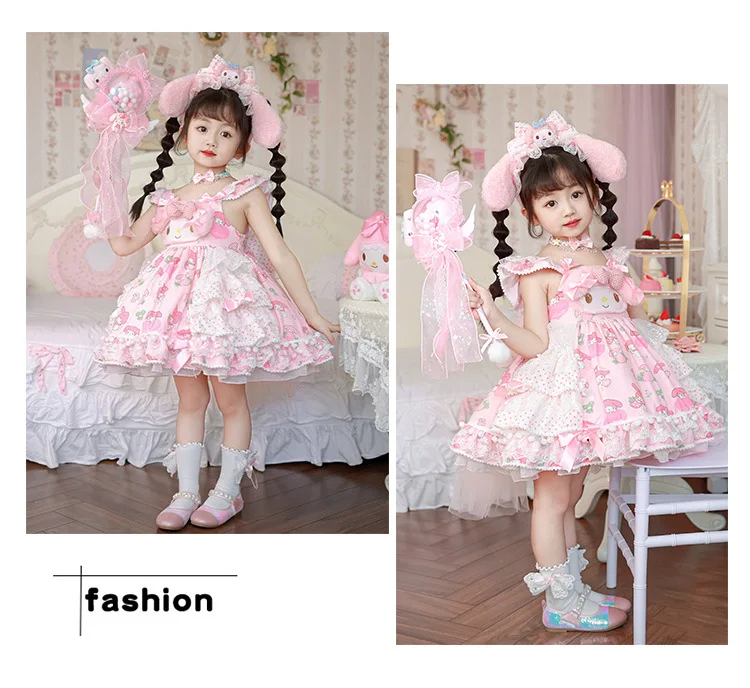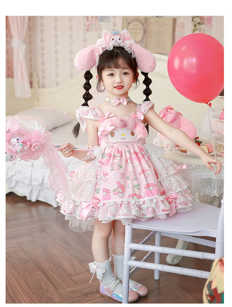 Cosplay minha melodia lolita vestido de princesa para meninas, fantasia de festa de aniversário infantil verão linda saia inchada presentes de natal