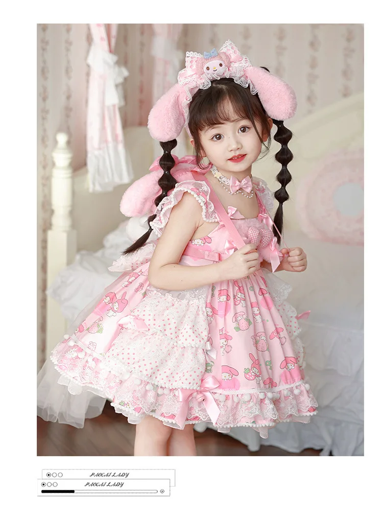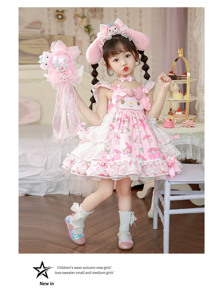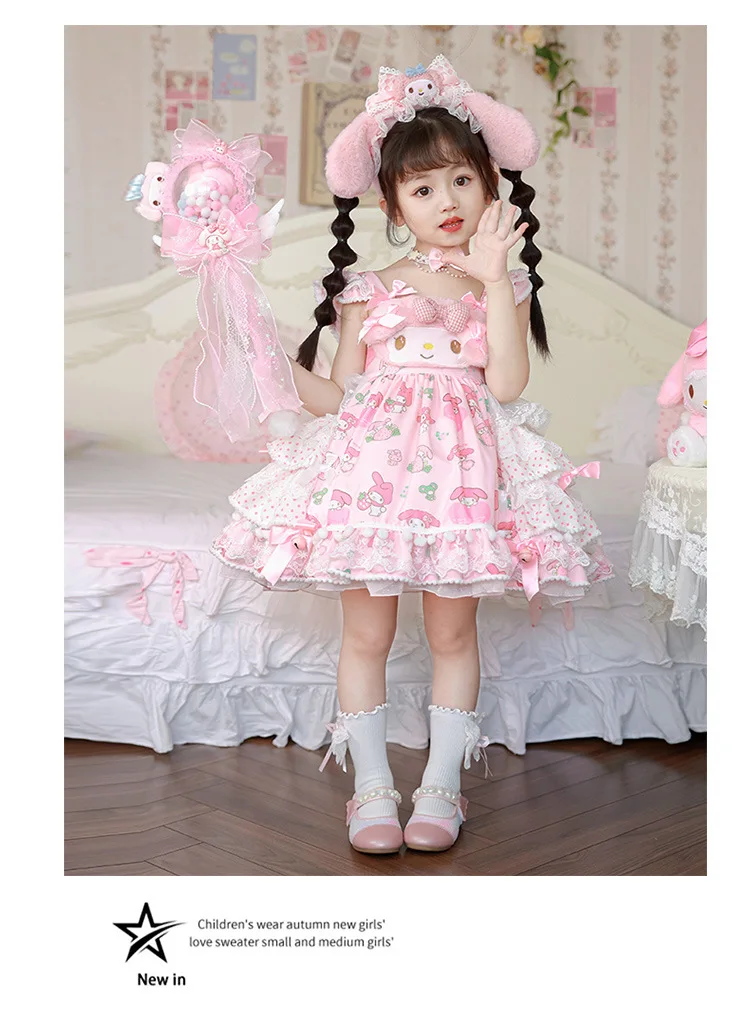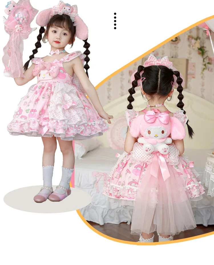 Cosplay minha melodia lolita vestido de princesa para meninas, fantasia de festa de aniversário infantil verão linda saia inchada presentes de natal