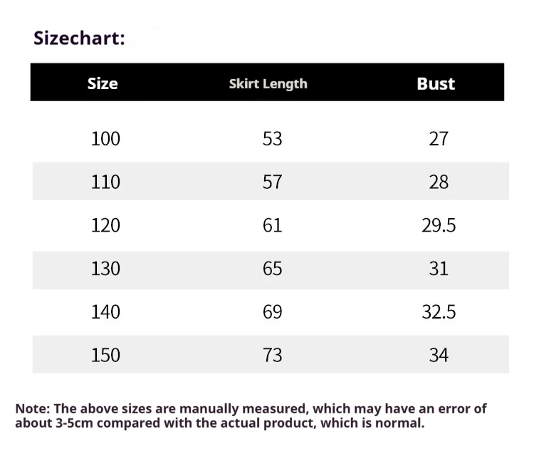 Observação: antes de comprar, verifique a tabela de tamanhos. A altura indicada no tamanho é apenas uma sugestão. Escolha o vestido com base na altura, peso e outras condições específicas do seu filho.