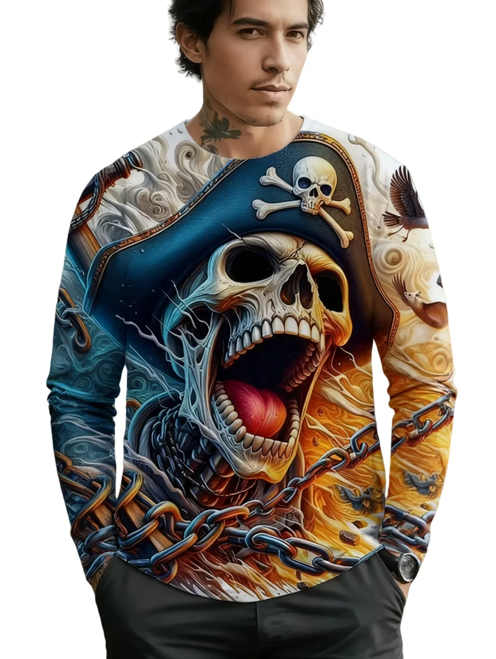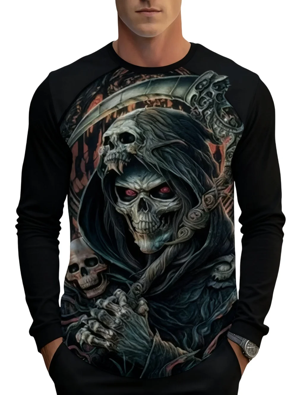 - > Crânio masculino gráfico t-shirts manga longa esqueleto impressão 3d rua homem t camisa outono o-pescoço casual y2k topo roupas masculinas de grandes dimensões