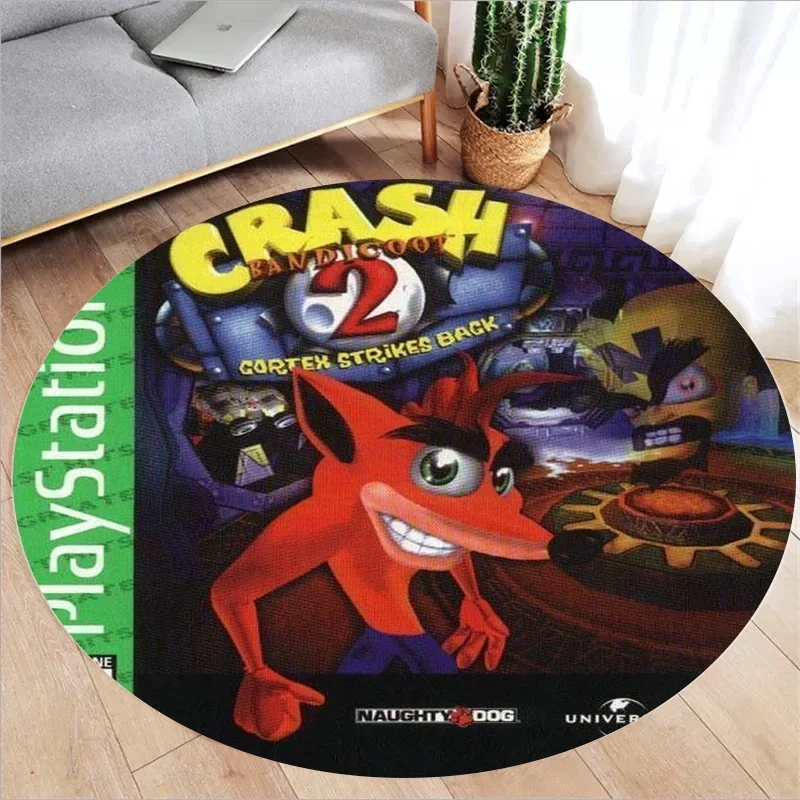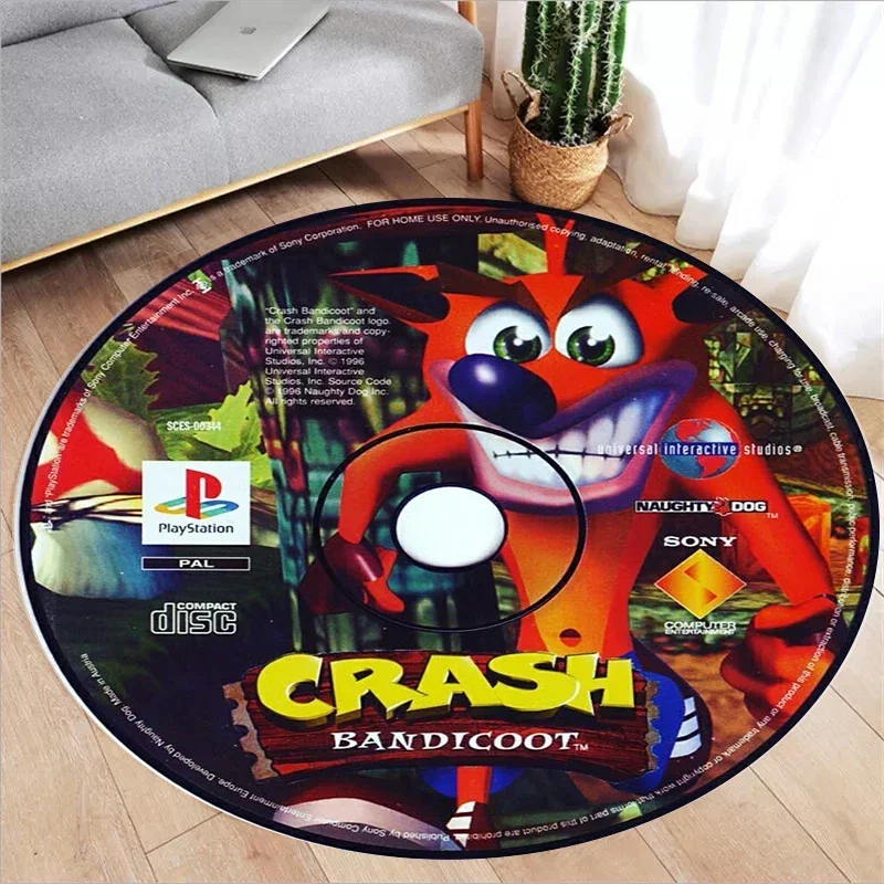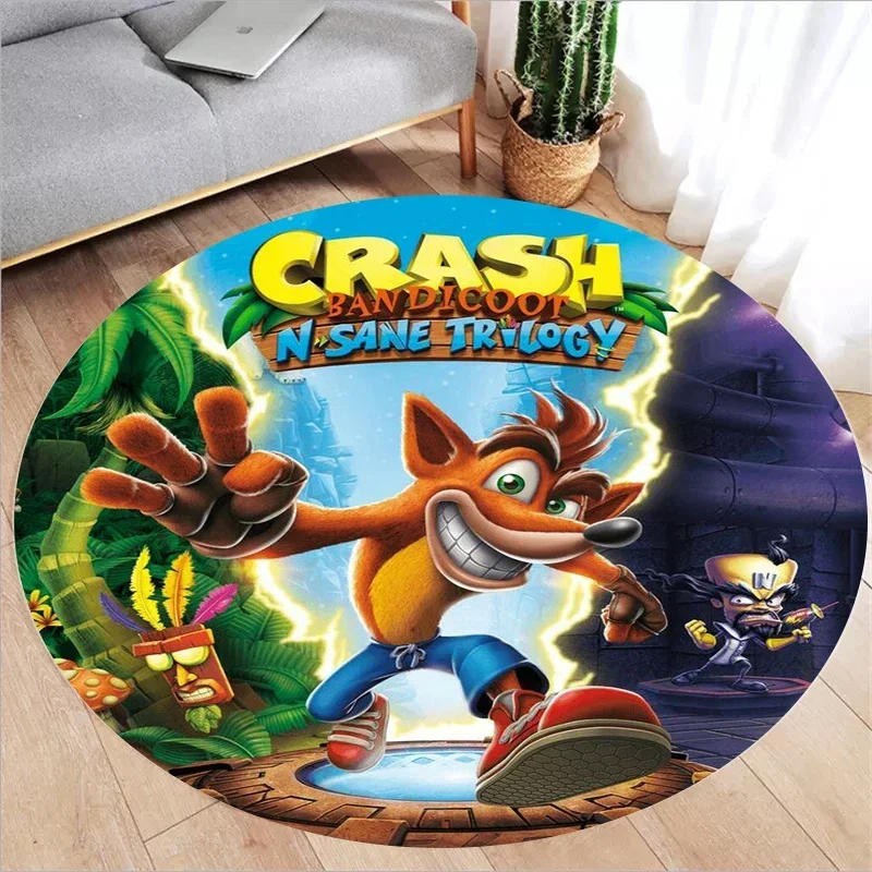 - > Crash bandicoot impresso tapete redondo para sala de jogos decoração ação passagem jogo quarto círculo tapete do quarto do menino jogar tapetes