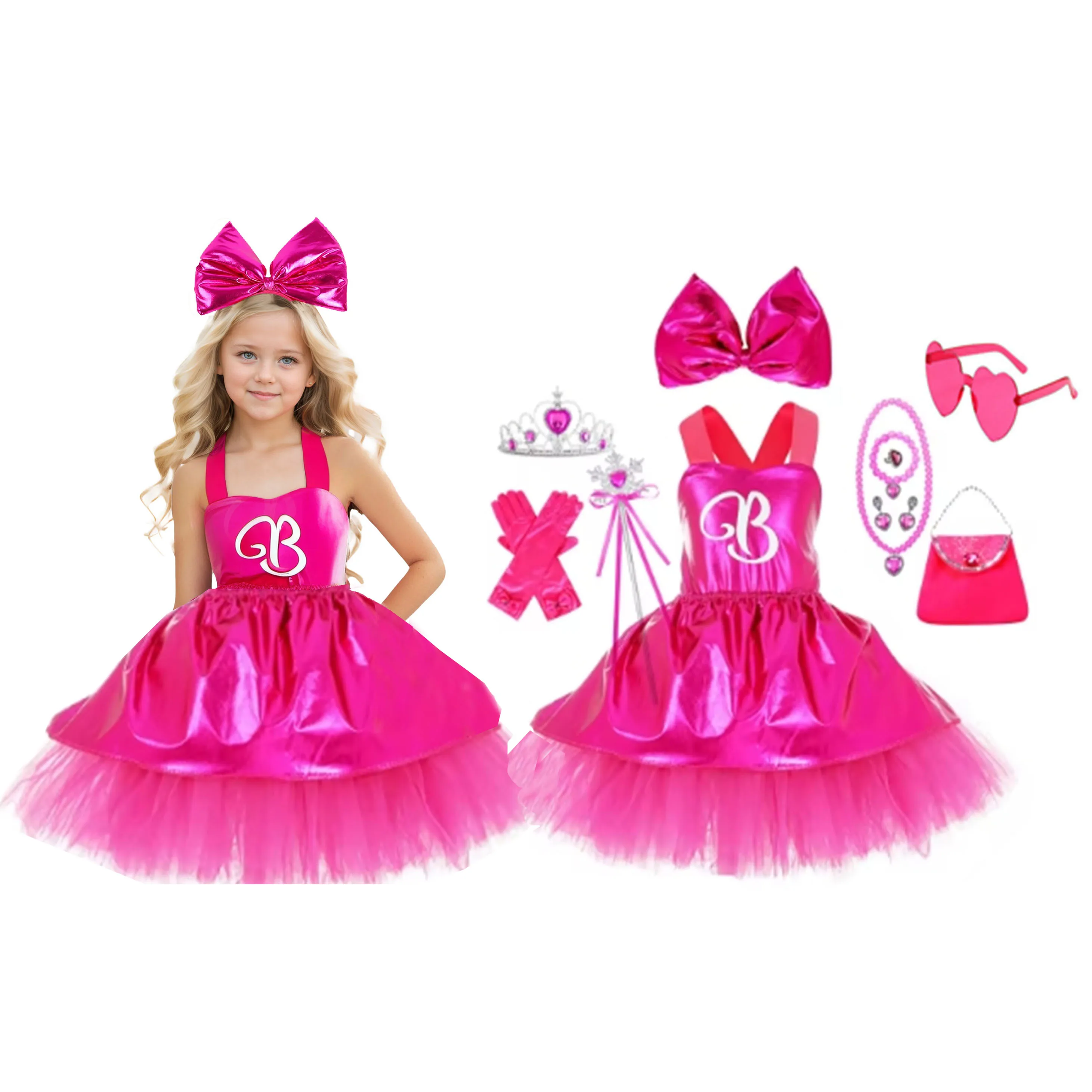 Criança meninas rosa quente festa de aniversário cosplay halloween fantasia vestido de páscoa meninas desempenho de palco vestido de férias