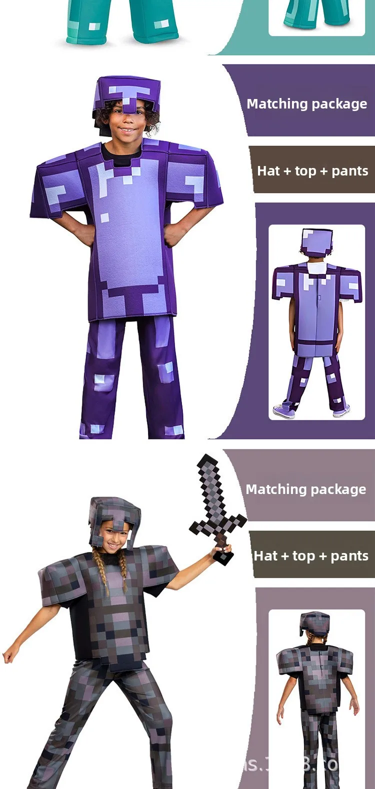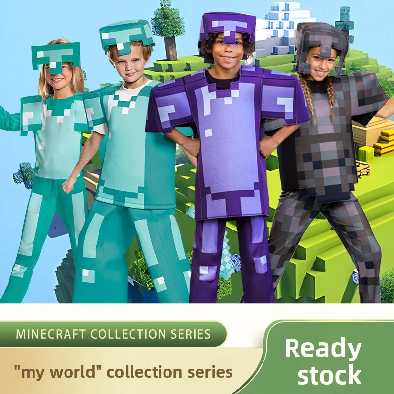 Crianças cosplay diamante armadura jogo personagem steve cosplay trajes 3 peças conjunto azul roupas vestir-se conjunto para o dia das bruxas para criança