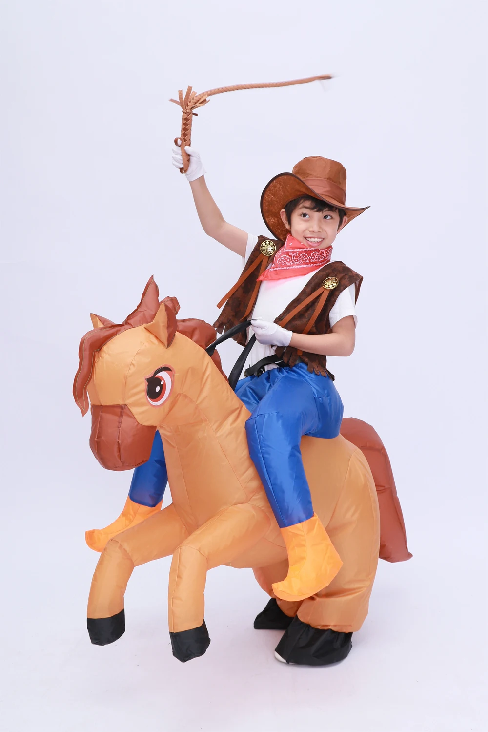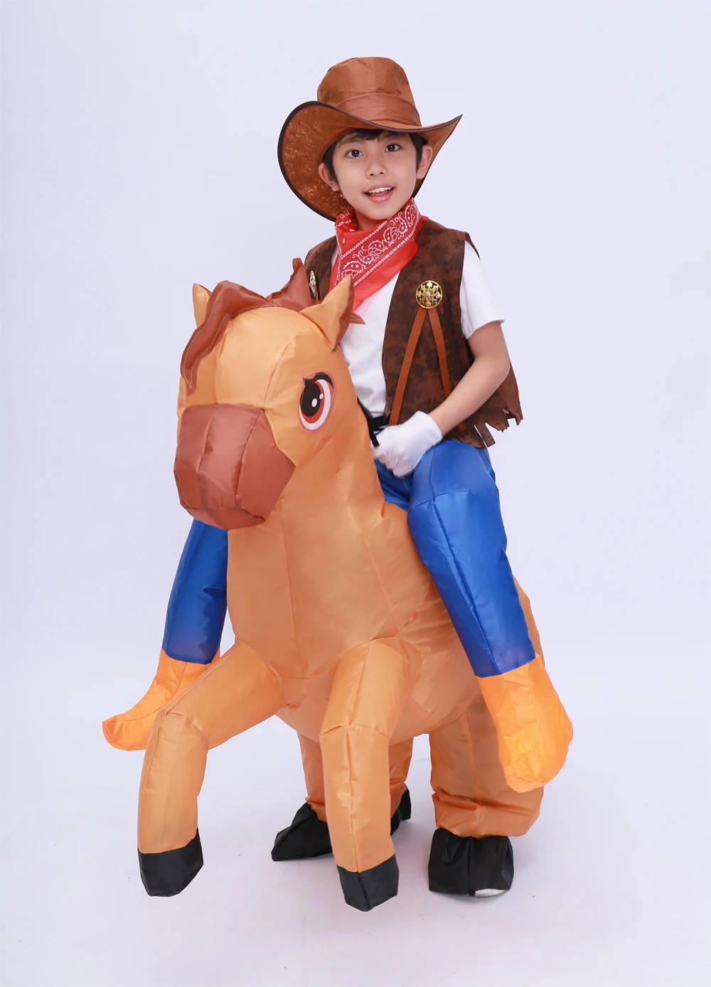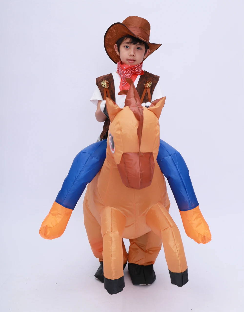 - > Crianças criança inflável cavalo traje meninas meninos rei cowboy passeio cavalo engraçado halloween purim festa inflado vestuário disfraces