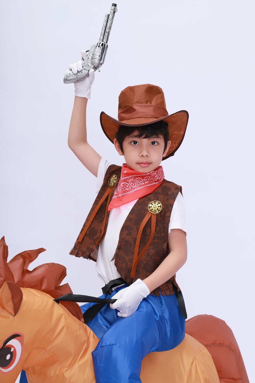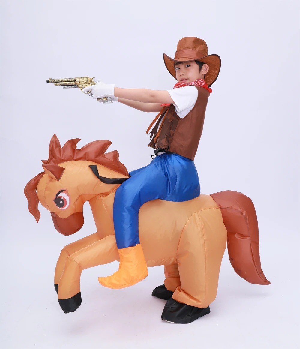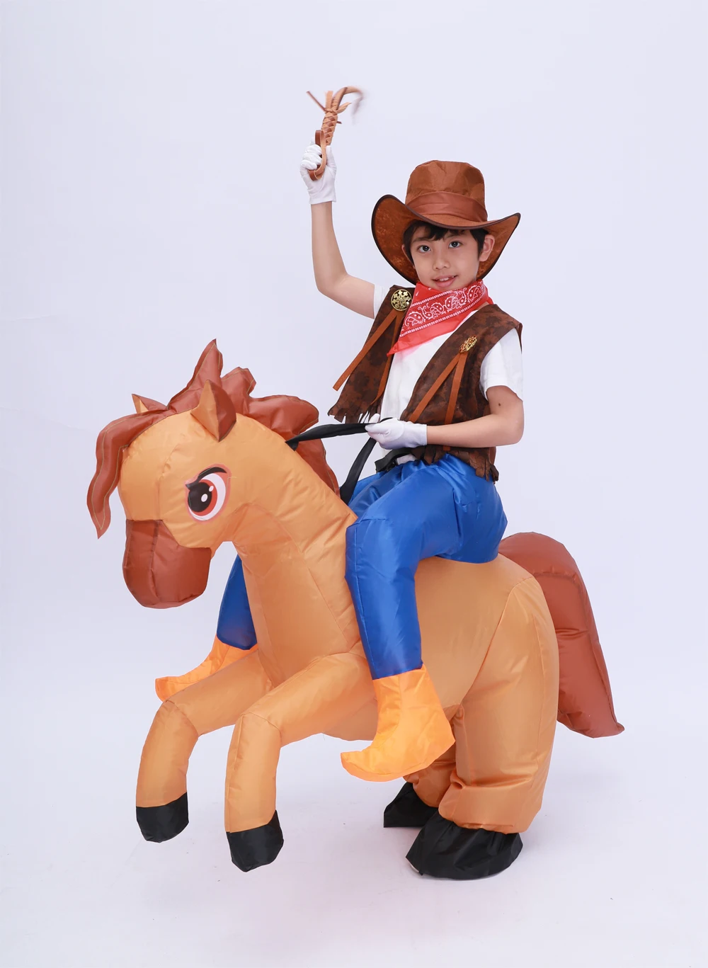 - > Crianças criança inflável cavalo traje meninas meninos rei cowboy passeio cavalo engraçado halloween purim festa inflado vestuário disfraces