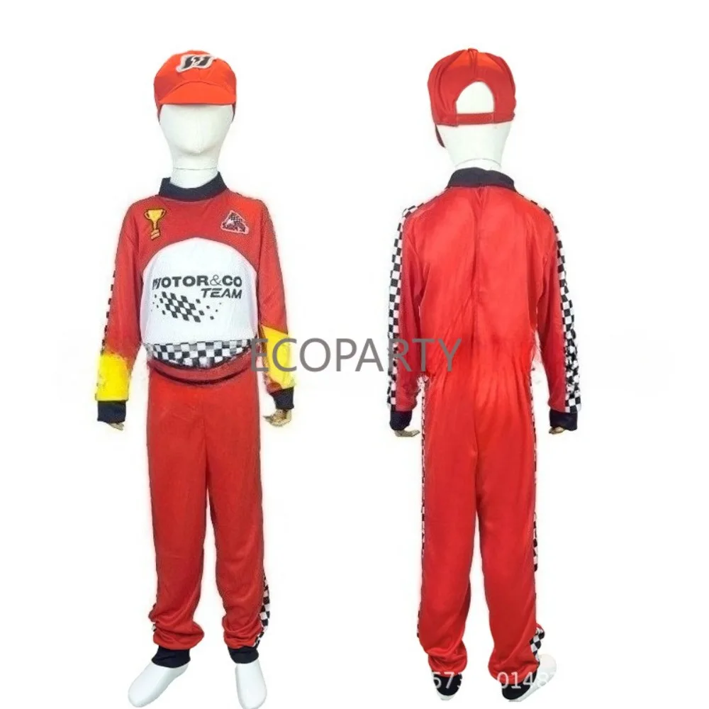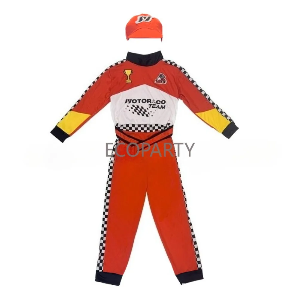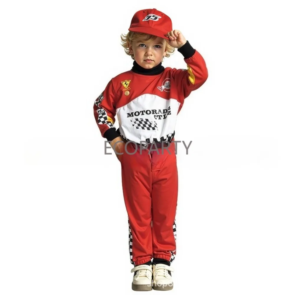 Crianças meninos halloween racer cosplay corrida vermelha carro motorista uniforme crianças traje de motorista de corrida fantasia vestido disfarce traje