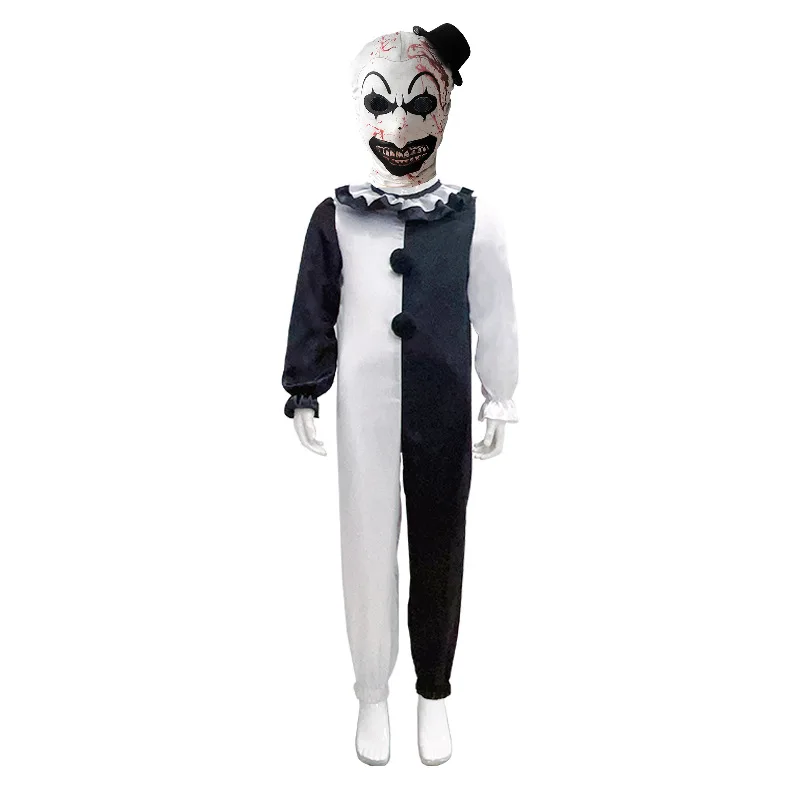 Crianças meninos meninas terrifier 3 cosplay coringa traje com máscara chapéu macacão halloween palhaço vestido criança bodysuit roupas de carnaval
