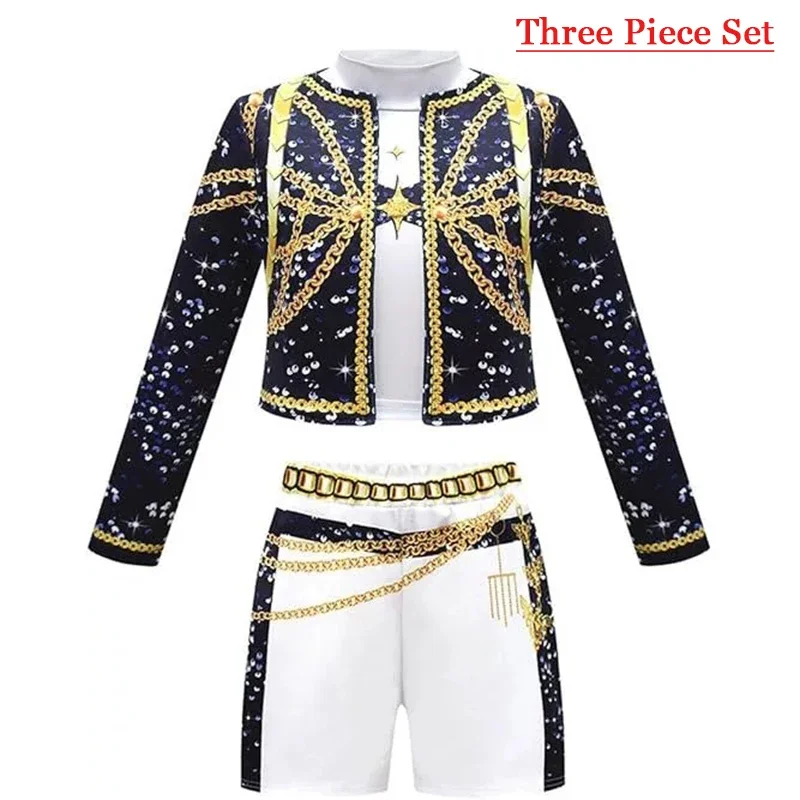 Crianças mira rumi zoey roupas de palco cosplay traje preto meninas uniforme festa de halloween role play impresso fantasia vestir-se ternos