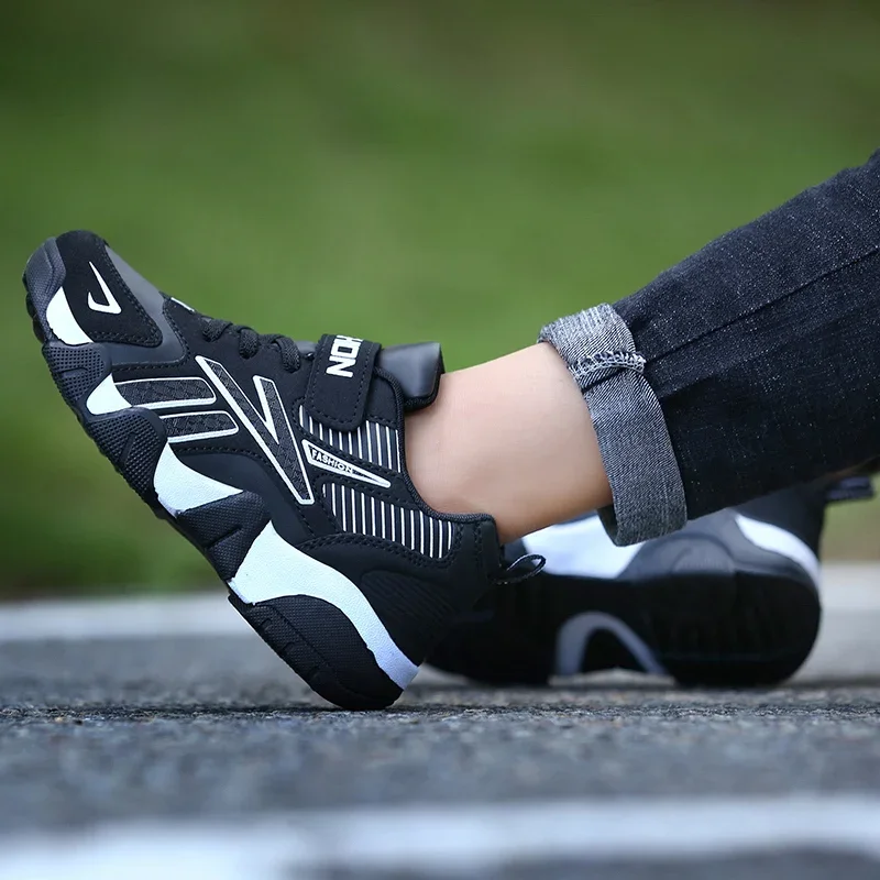 - > Crianças moda tênis meninos tênis de couro confortável tênis de corrida leve ao ar livre das crianças esportes sapatos caminhada