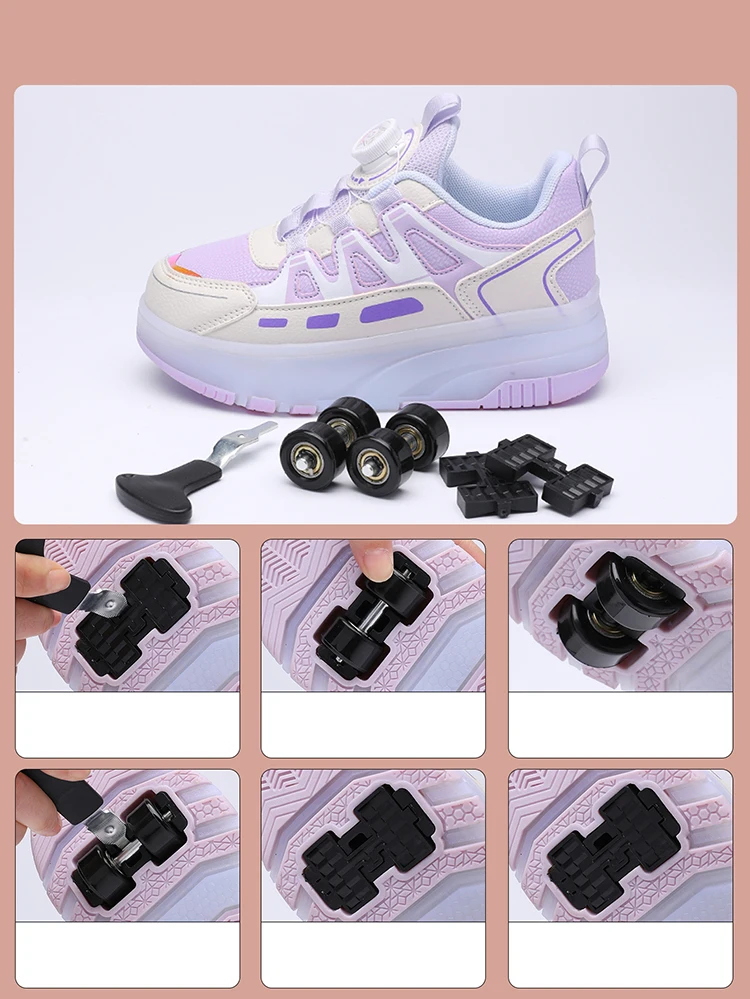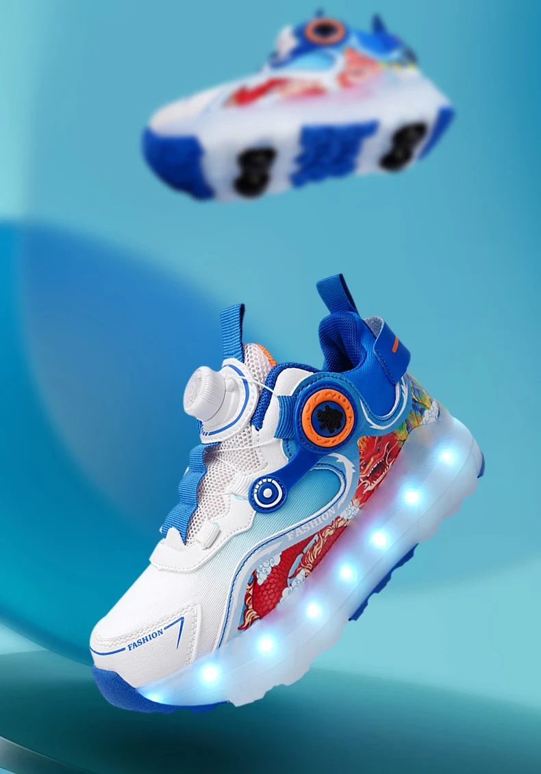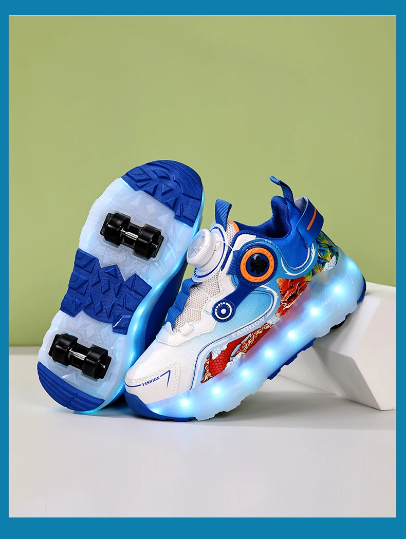 - > Crianças quatro rodas luminosa brilhante tênis preto rosa led luz rolo sapatos de skate crianças sapatos led meninos meninas carregamento usb