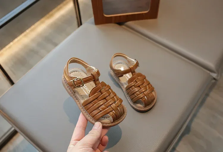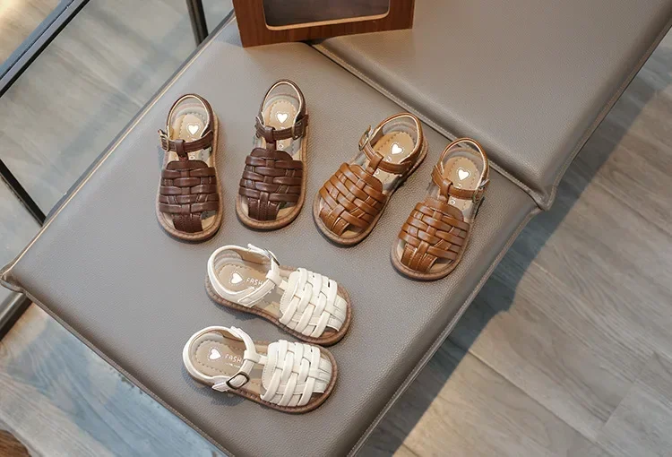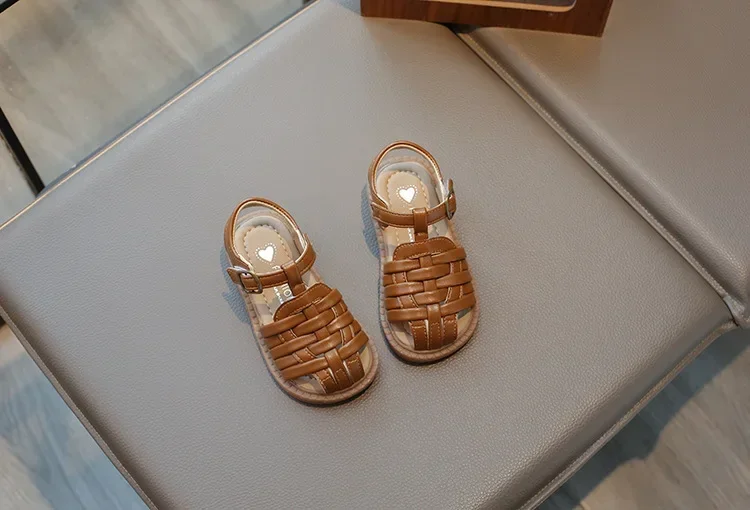 - > Crianças sandálias 2025 sandálias de verão para menino moda crianças recortes sapatos de praia estilo trançado causal andando sandálias planas