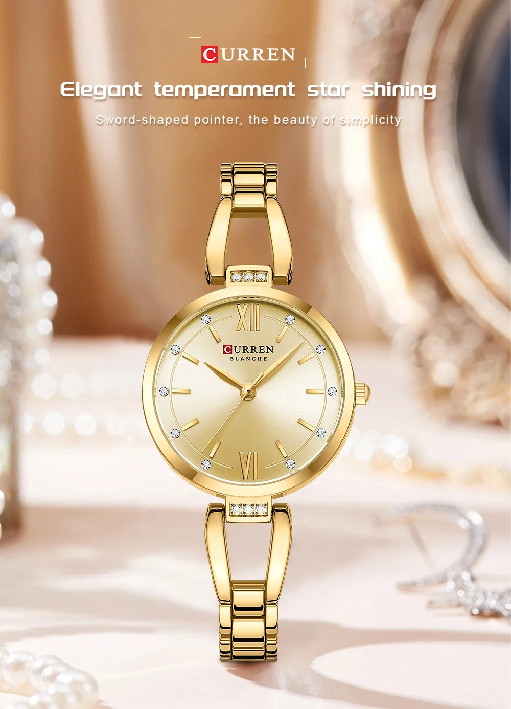 - > Curren-relógio de pulso feminino 9092, luxo, elegante, pulseira de aço inoxidável, pulseira, feminino, moda, para meninas
