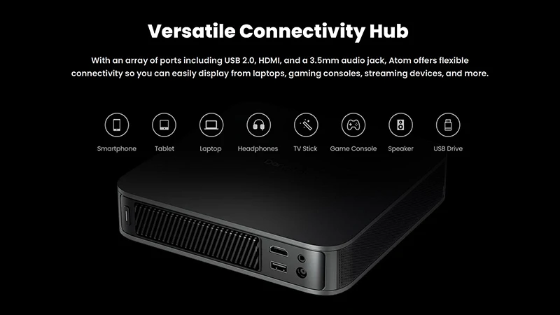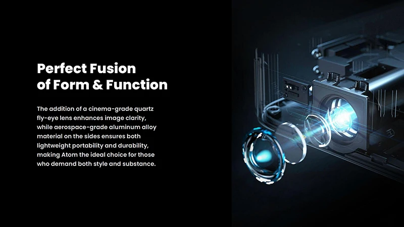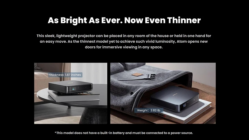 O design leve do projetor laser Dangbei Atom (2,6 kg) facilita a movimentação, ideal para noites de cinema ao ar livre ou trocas rápidas de configuração.
