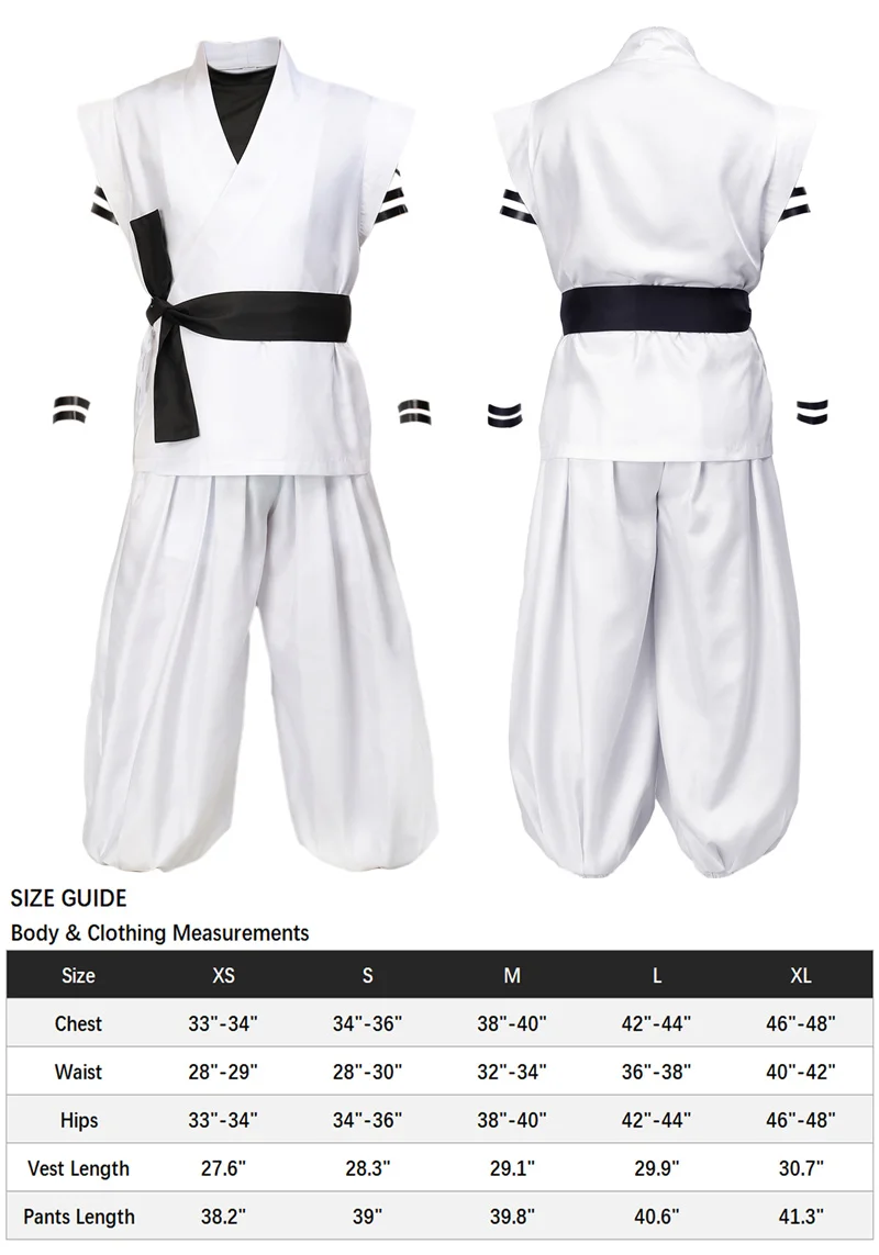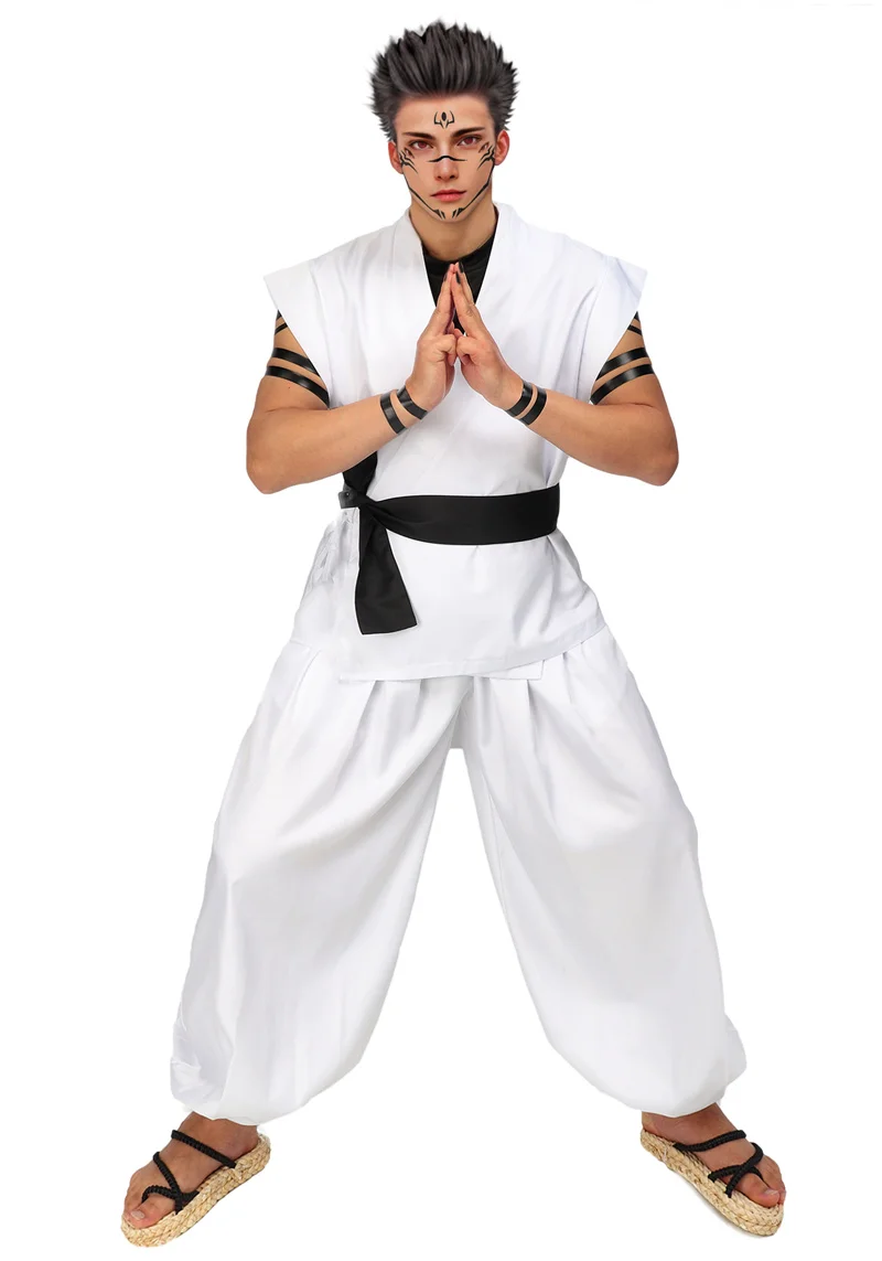 Dazcos ryomen sukuna traje branco kung fu terno com adesivos de tatuagem ryomen sukuna como megumi showdown cosplay traje conjunto completo