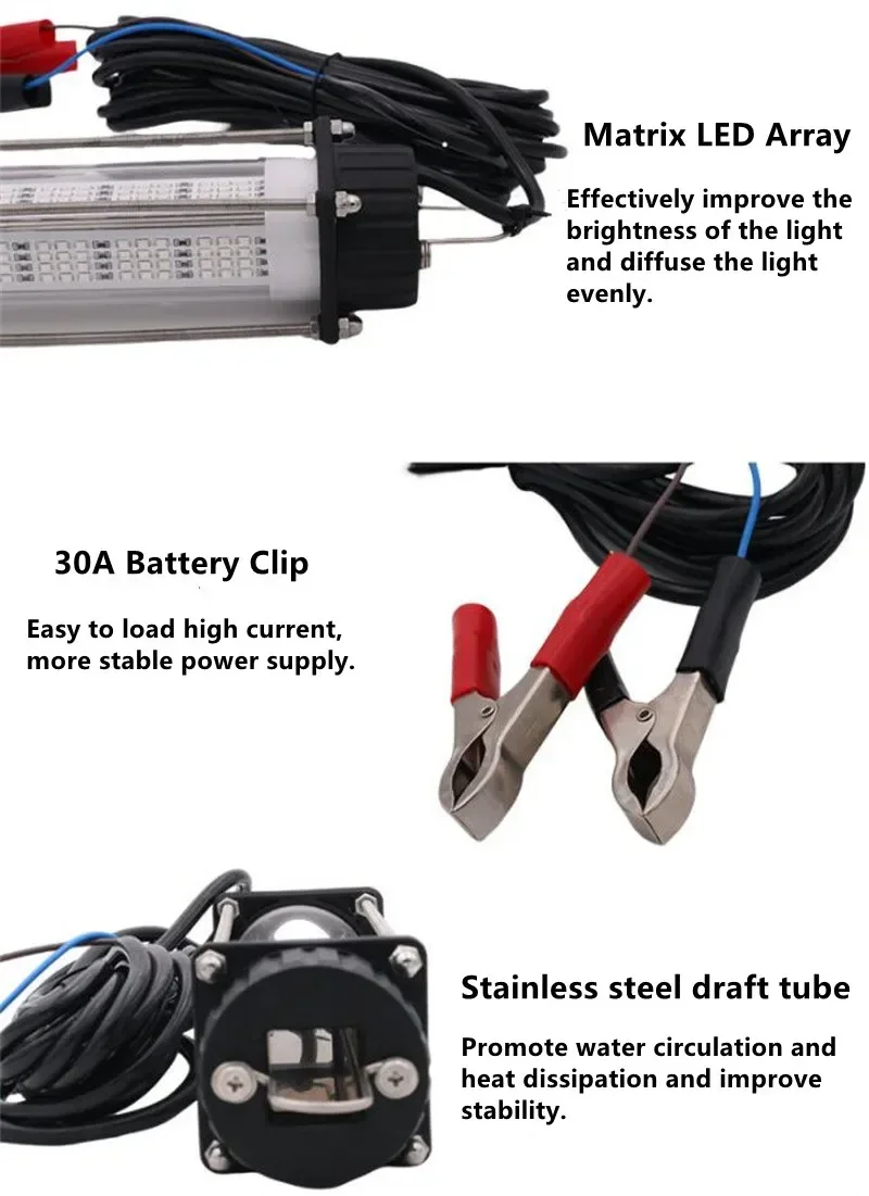 Dc12v 120w led isca de pesca submersível à prova dwaterproof água de alta potência peixe subaquático branco isca luz noite pesca localizador