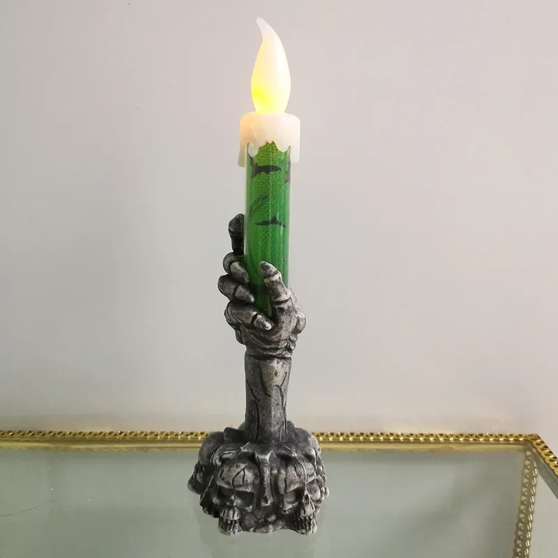 - > Decoração de halloween fantasma festival atmosfera layout adereços plástico fantasma mão esqueleto luz led vela luminosa