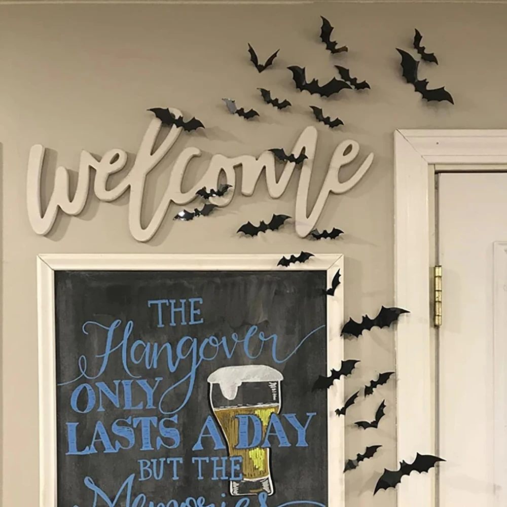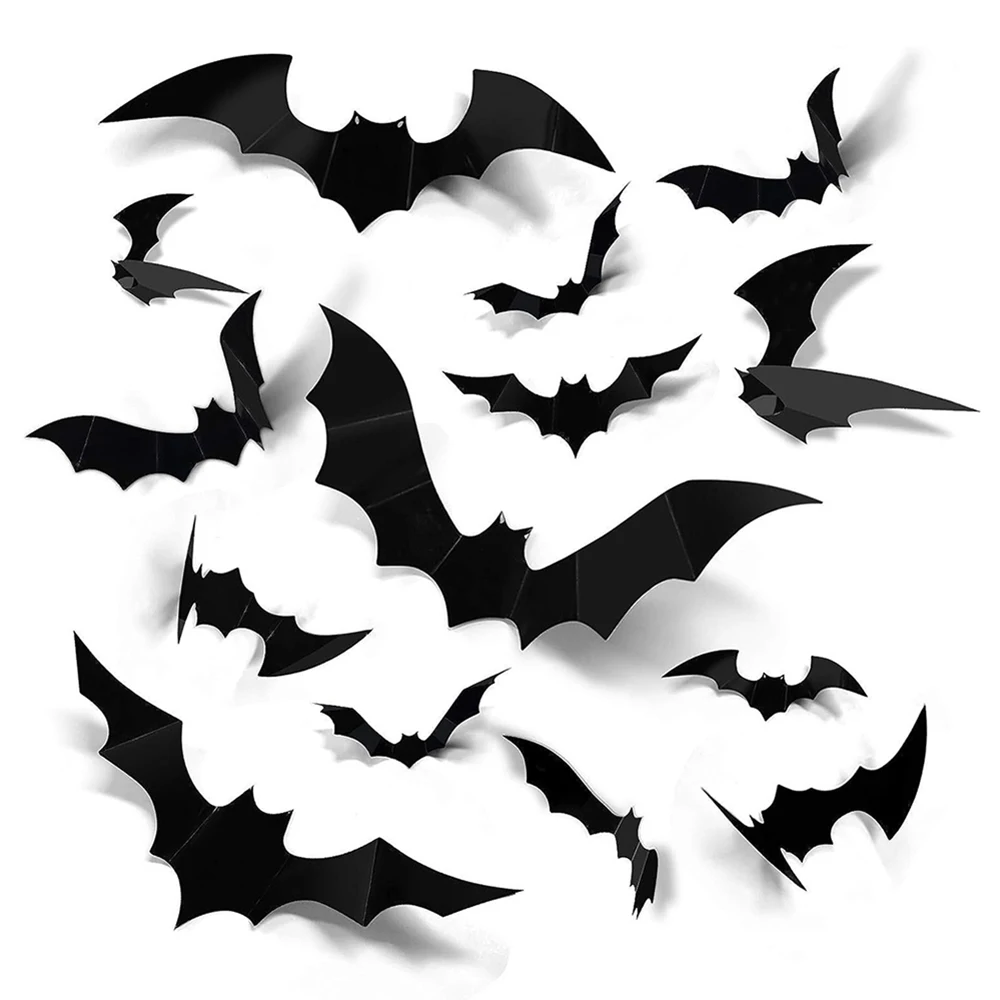 - > Decorações de morcegos de Halloween, morcego de PVC 3D na parede, adesivos de parede de morcegos pretos, adereços assustadores de Halloween